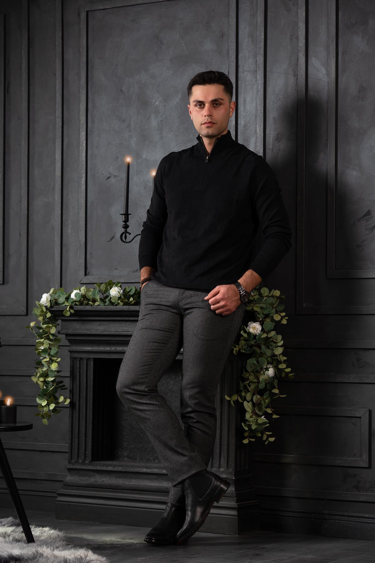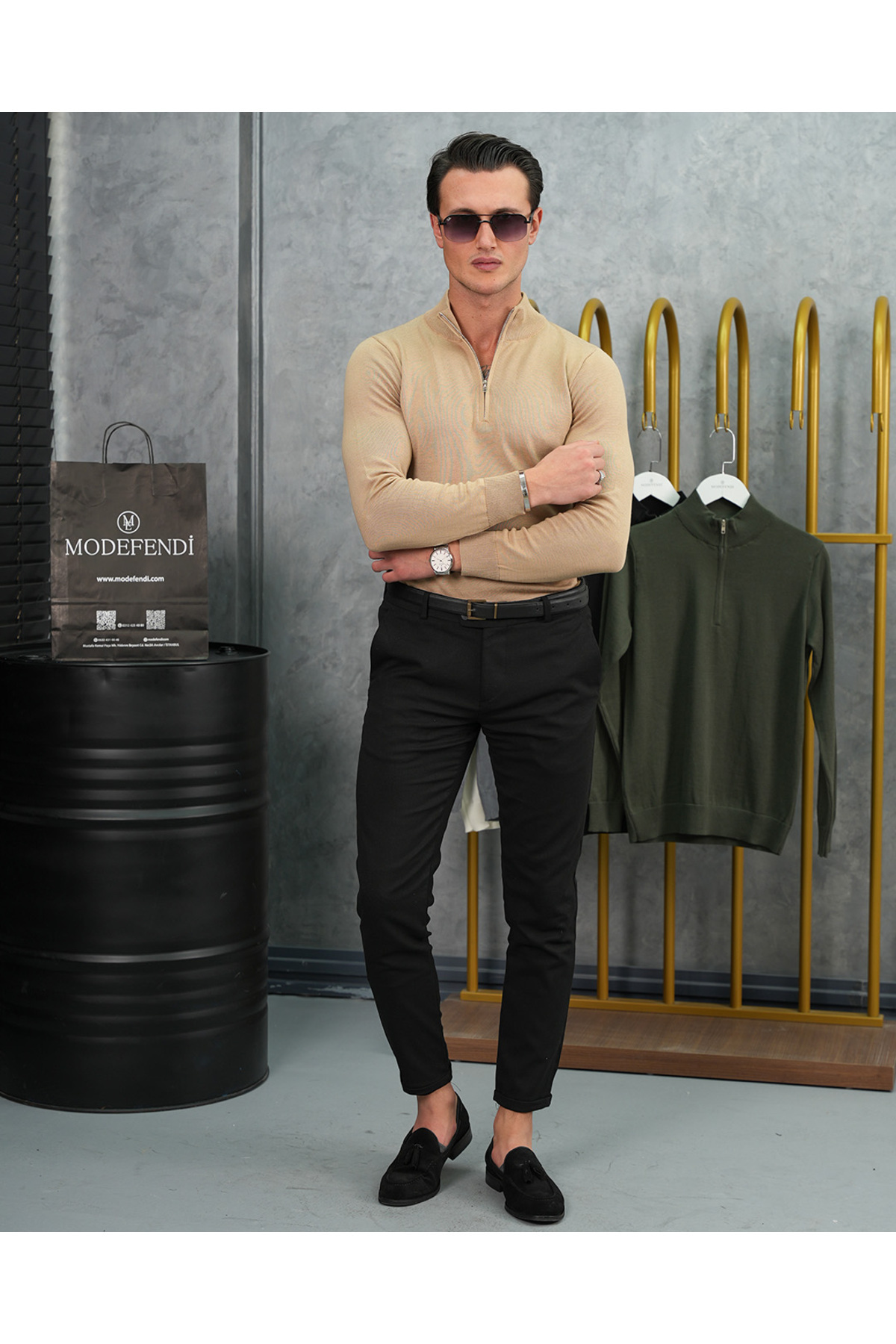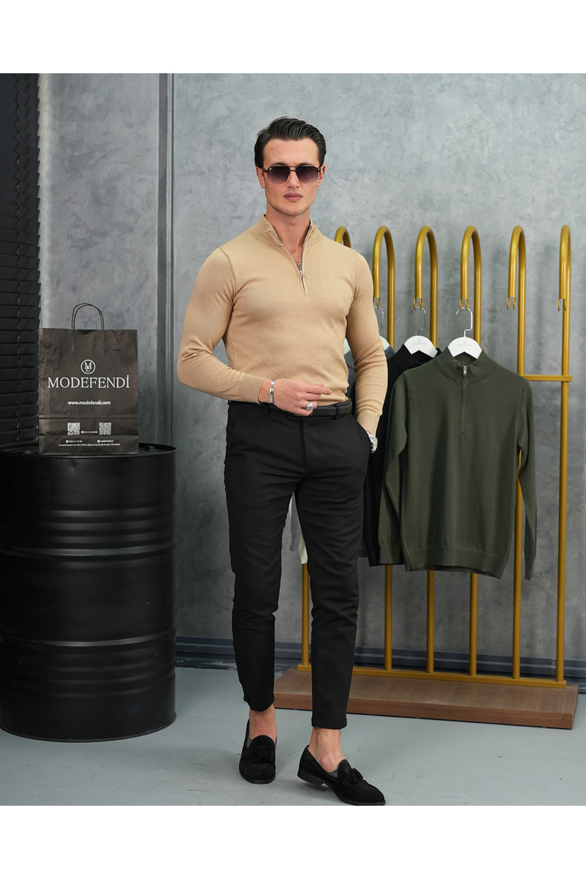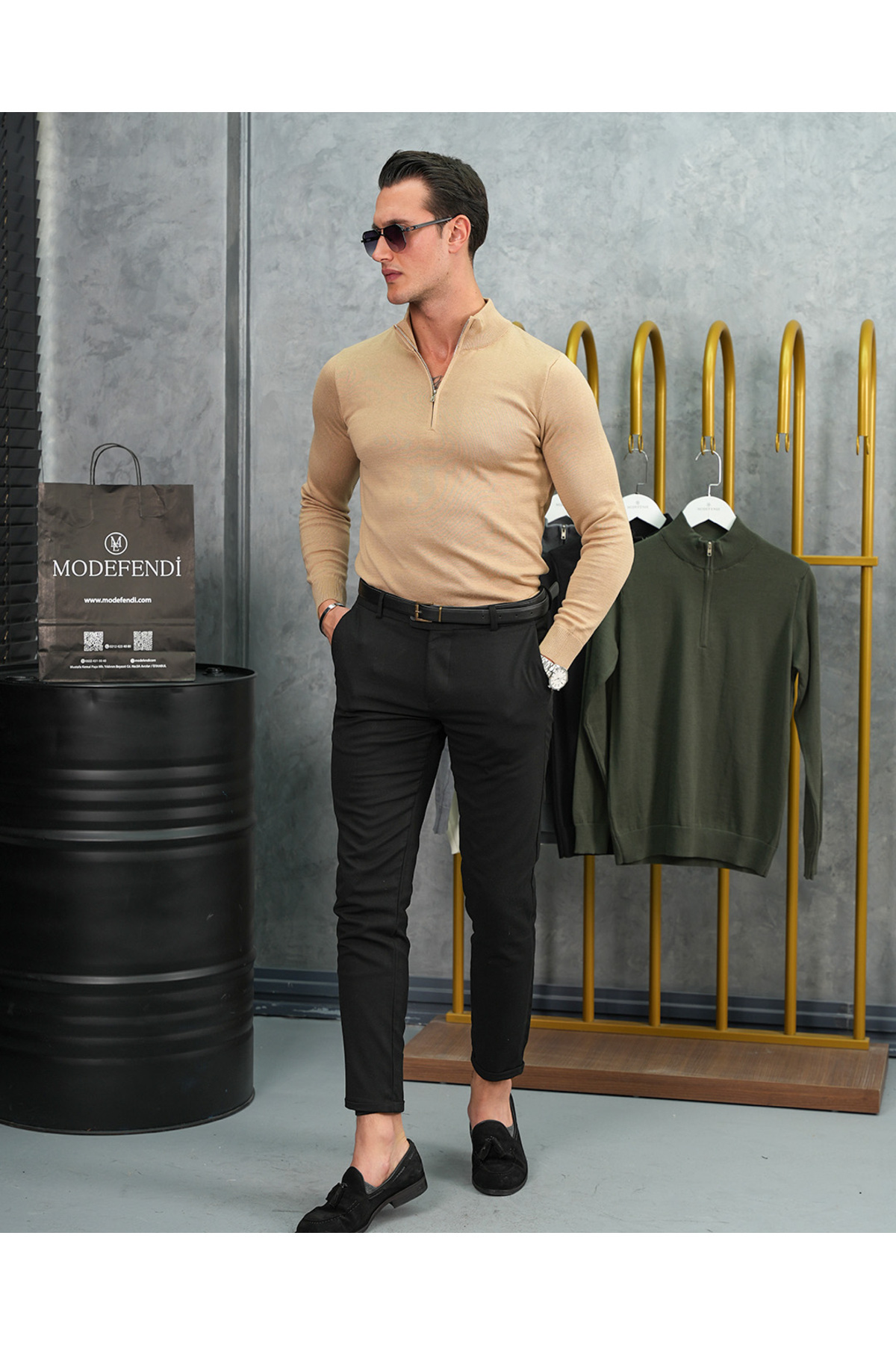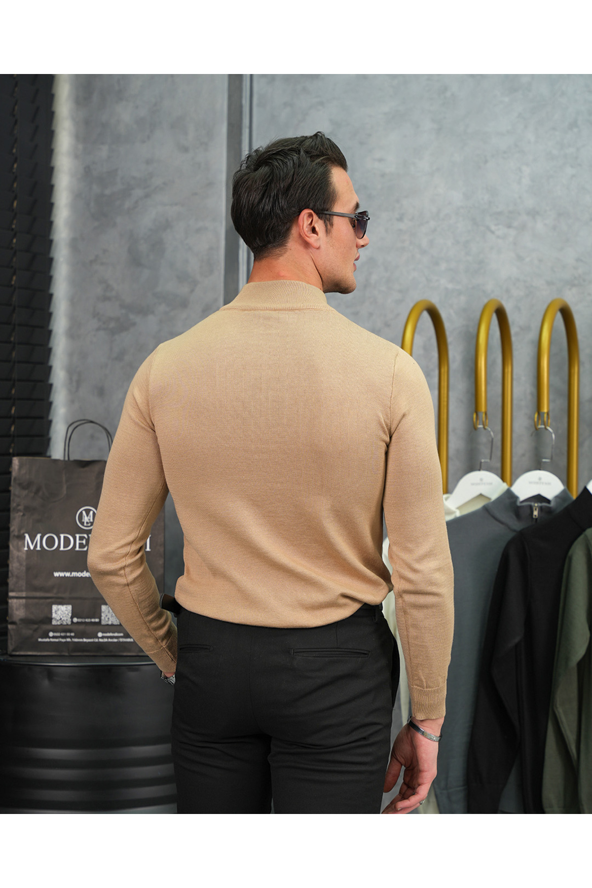 Pamuk Likra Slim Fit Yarım Fermuarlı Kazak Pamuk Likra Slim Fit Yarım Fermuarlı Kazak YFK000001 2XL