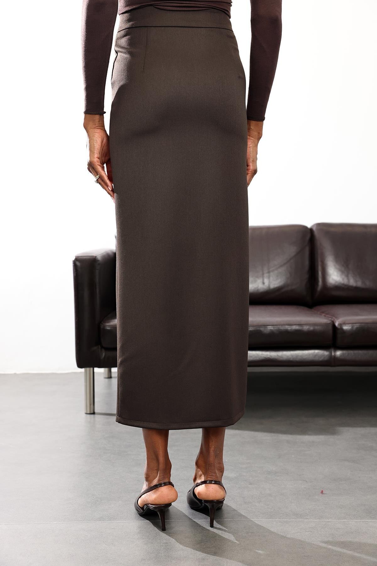 Acı Kahve Yırtmaçlı Midi Kalem Etek Acı Kahve Yırtmaçlı Midi Kalem Etek etek632 L