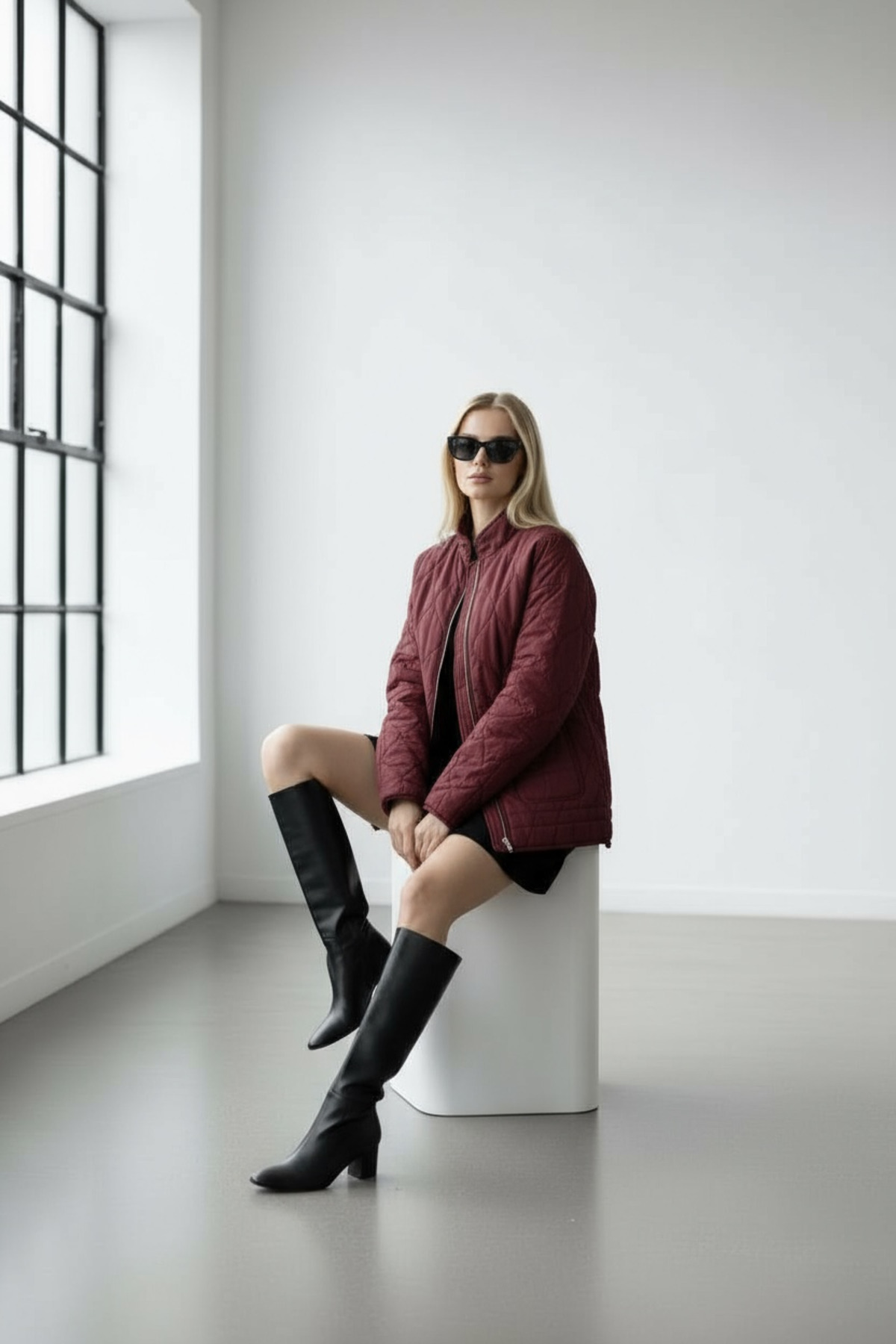 Bordo Kahverengi Kapitone Mont Bordo Kahverengi Kapitone Mont MO0001 XL