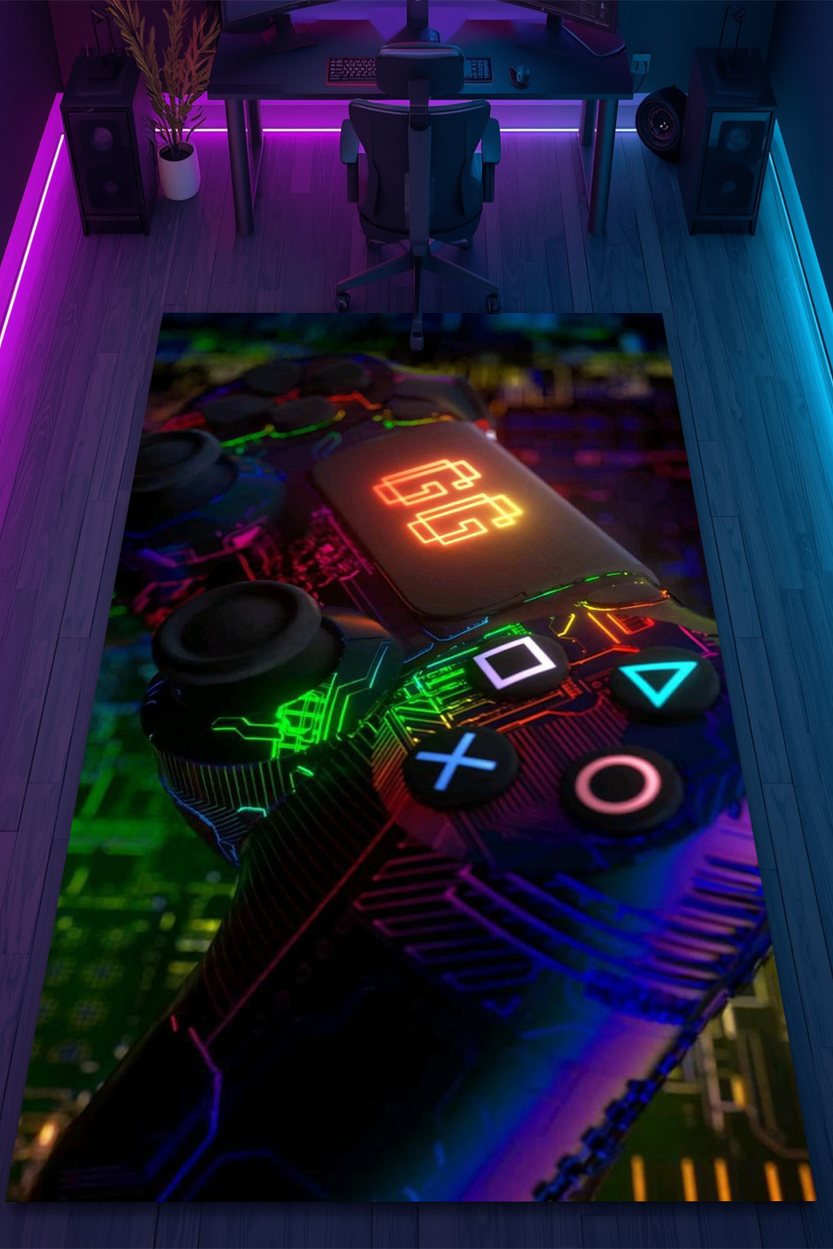 مشخصات فنی Sanat Artwork Desenli Kaymaz Taban Makinede Yıkanabilir Gaming Oyuncu Gamer Genç Odası Halısı