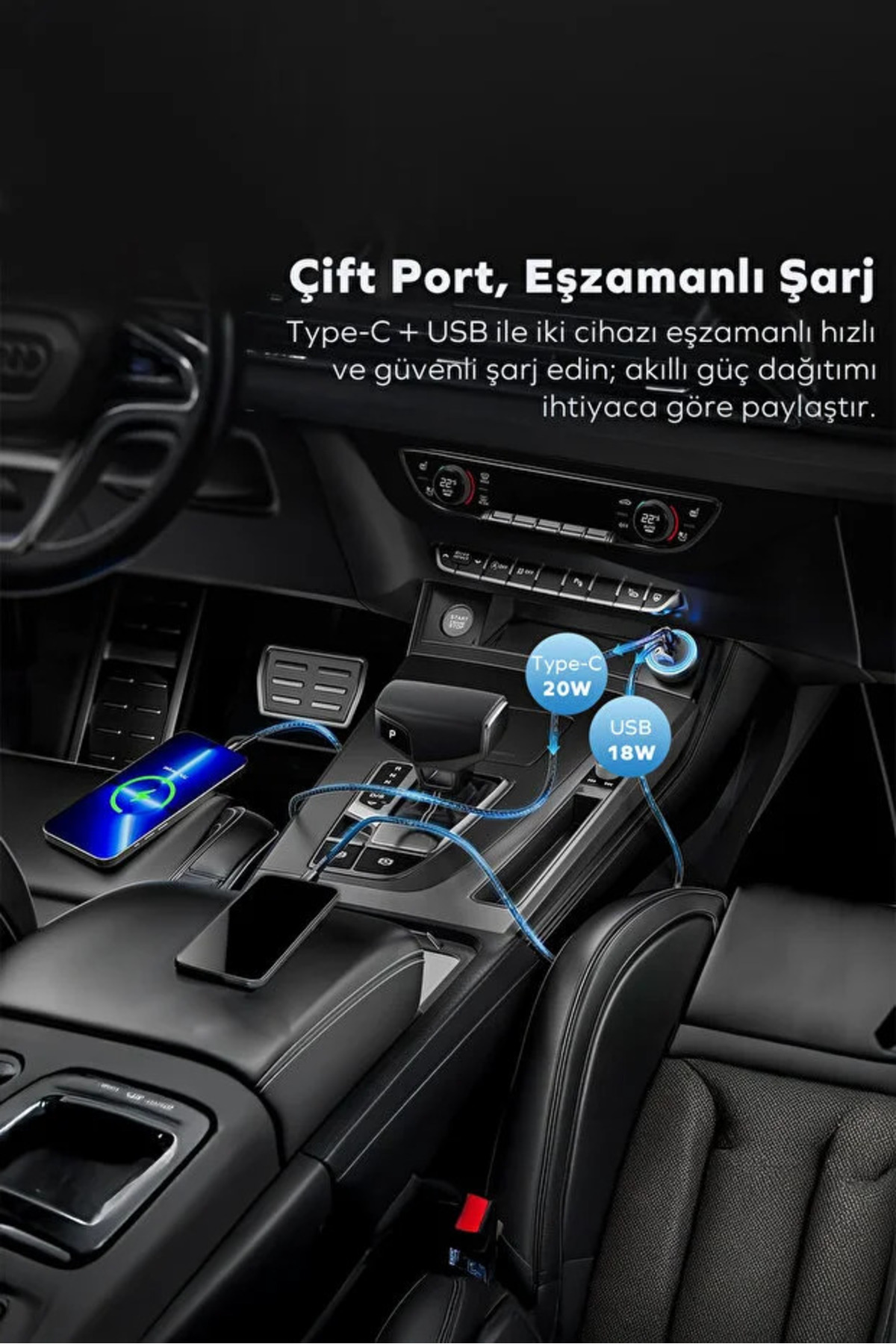 Araç Şarj Aleti Çakmaklık Type-C + USB Girişli Kablolu Set 38W Araç Şarj Aleti Çakmaklık Type-C + USB Girişli Kablolu Set 38W 554532 تک سایز