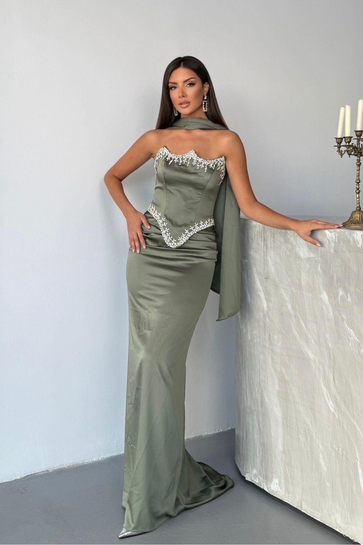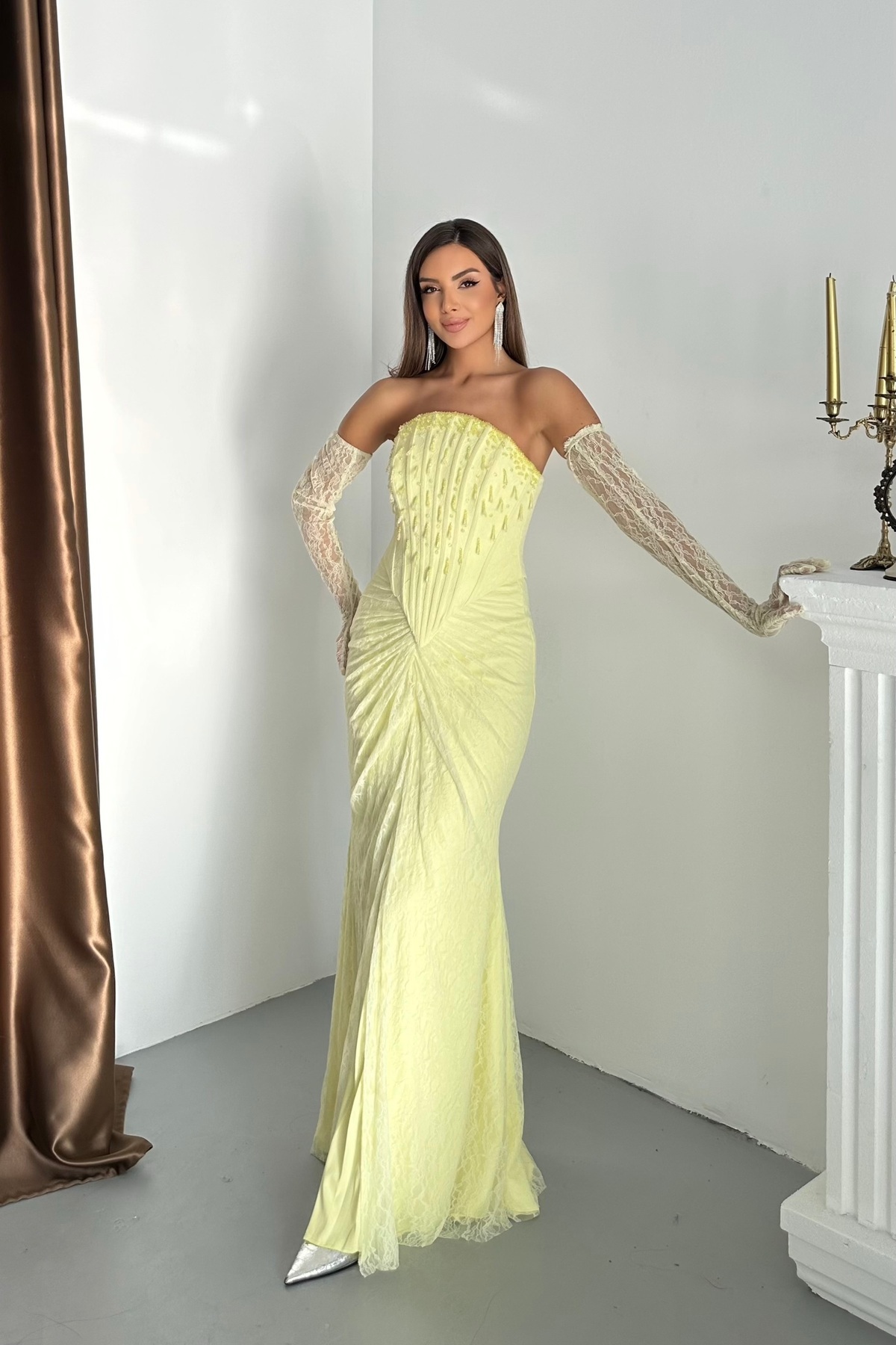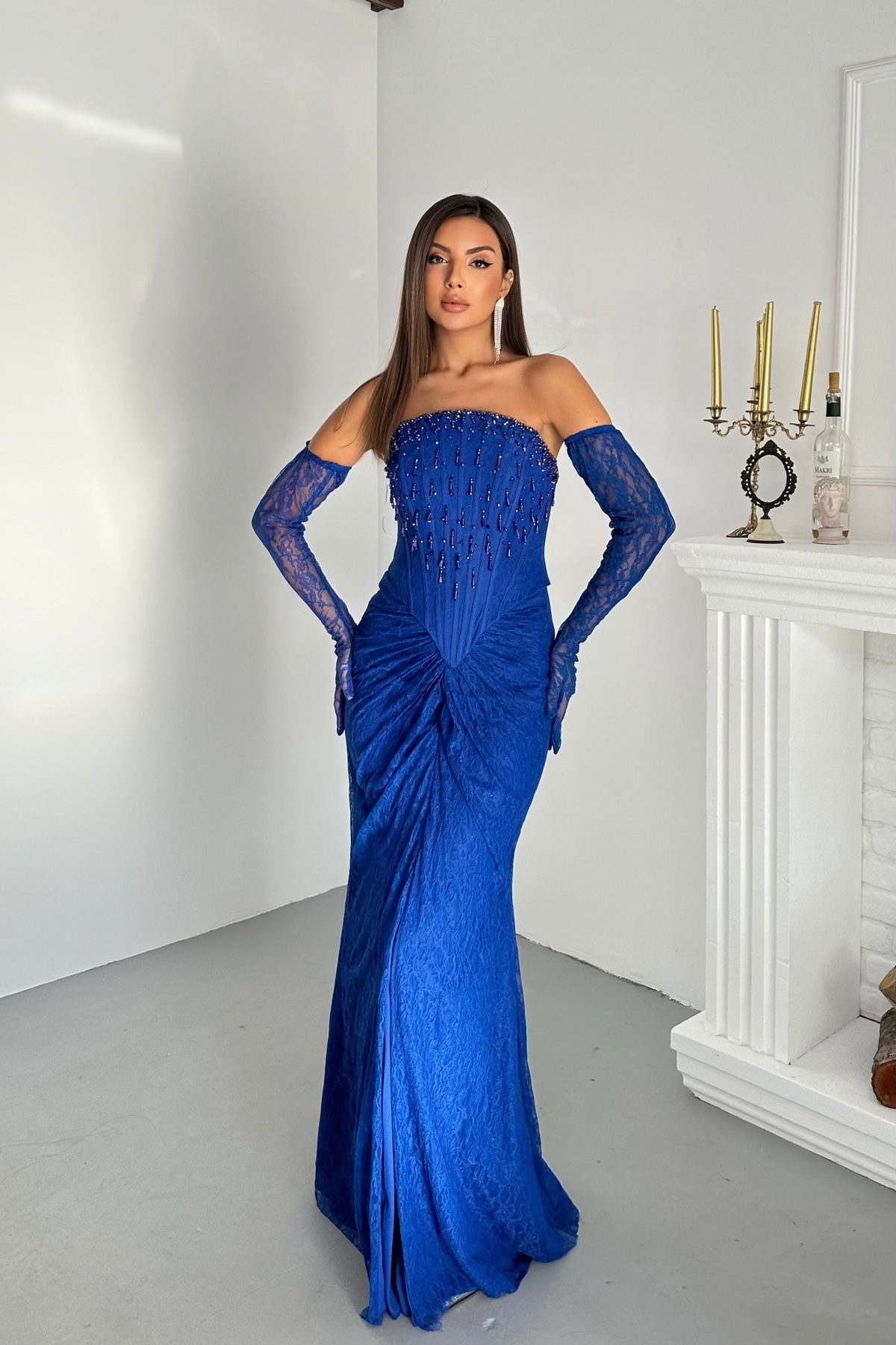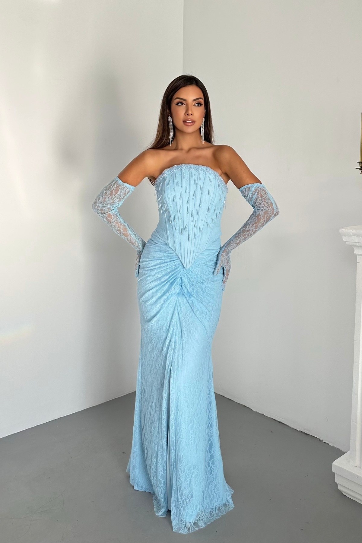 Eldivenli Dantel Kumaşlı Ve Göğüs Taş Saçaklı Şık Tasarım Abiye Elbise Dar Kalıp Eldivenli Dantel Kumaşlı Ve Göğüs Taş Saçaklı Şık Tasarım Abiye Elbise Dar Kalıp 3070 44