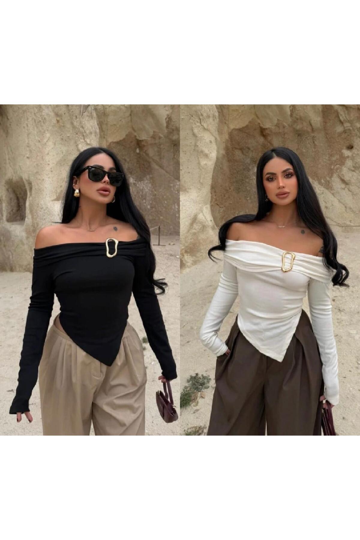 Kadın Beyaz Madonna Yaka Tokalı Bluz Kadın Beyaz Madonna Yaka Tokalı Bluz 4135 L