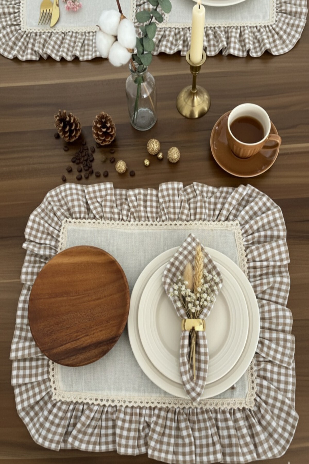 6 Lı Cepli Ham Keten Kareli Fırfır Detaylı Amerikan Servisi /Supla 6 Lı Cepli Ham Keten Kareli Fırfır Detaylı Amerikan Servisi /Supla zarafet 267 35 x 45