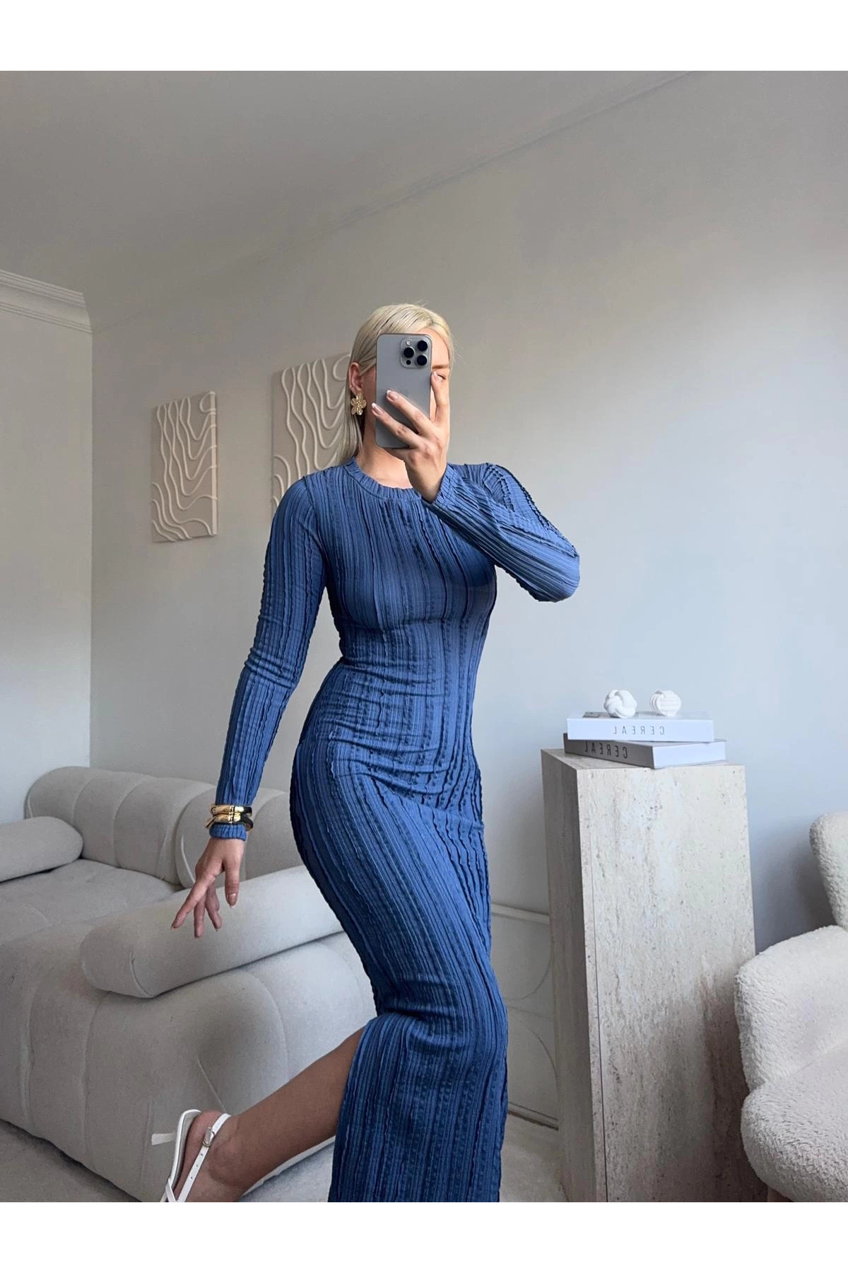 Fitilli Ters Dikiş Yırtmaç Elbise - KAHVE Fitilli Ters Dikiş Yırtmaç Elbise - KAHVE P4121S7836 L