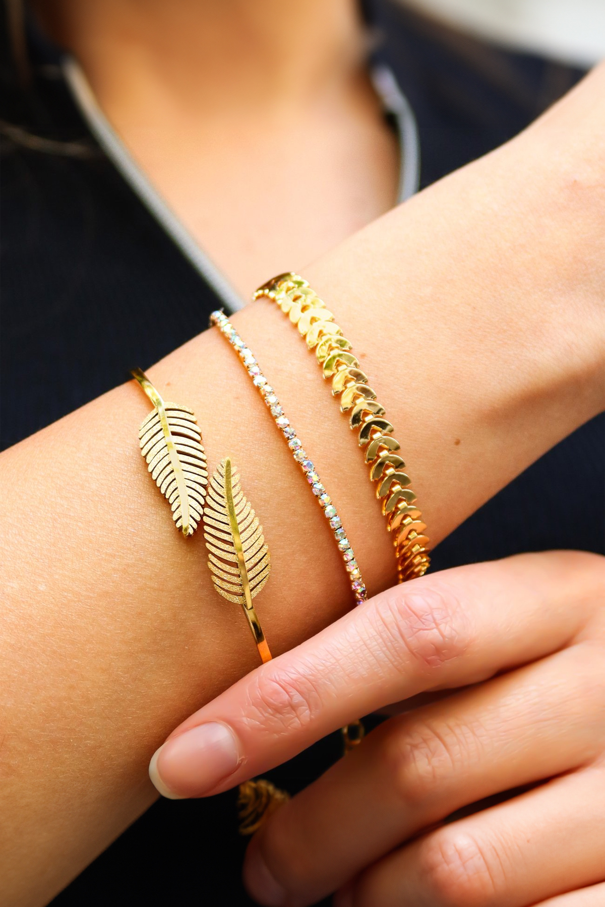 Yaprak Model Gold Renk Pirinç Kadın Bileklik | Şık ve Dayanıklı Takı Yaprak Model Gold Renk Pirinç Kadın Bileklik | Şık ve Dayanıklı Takı EBU8057 Standart