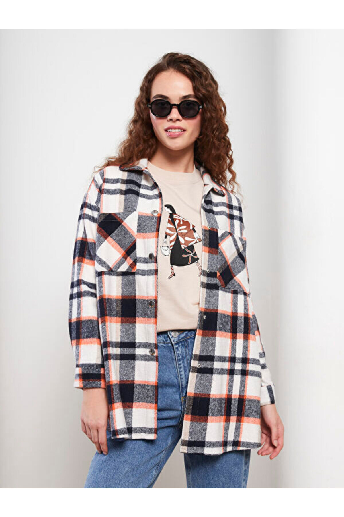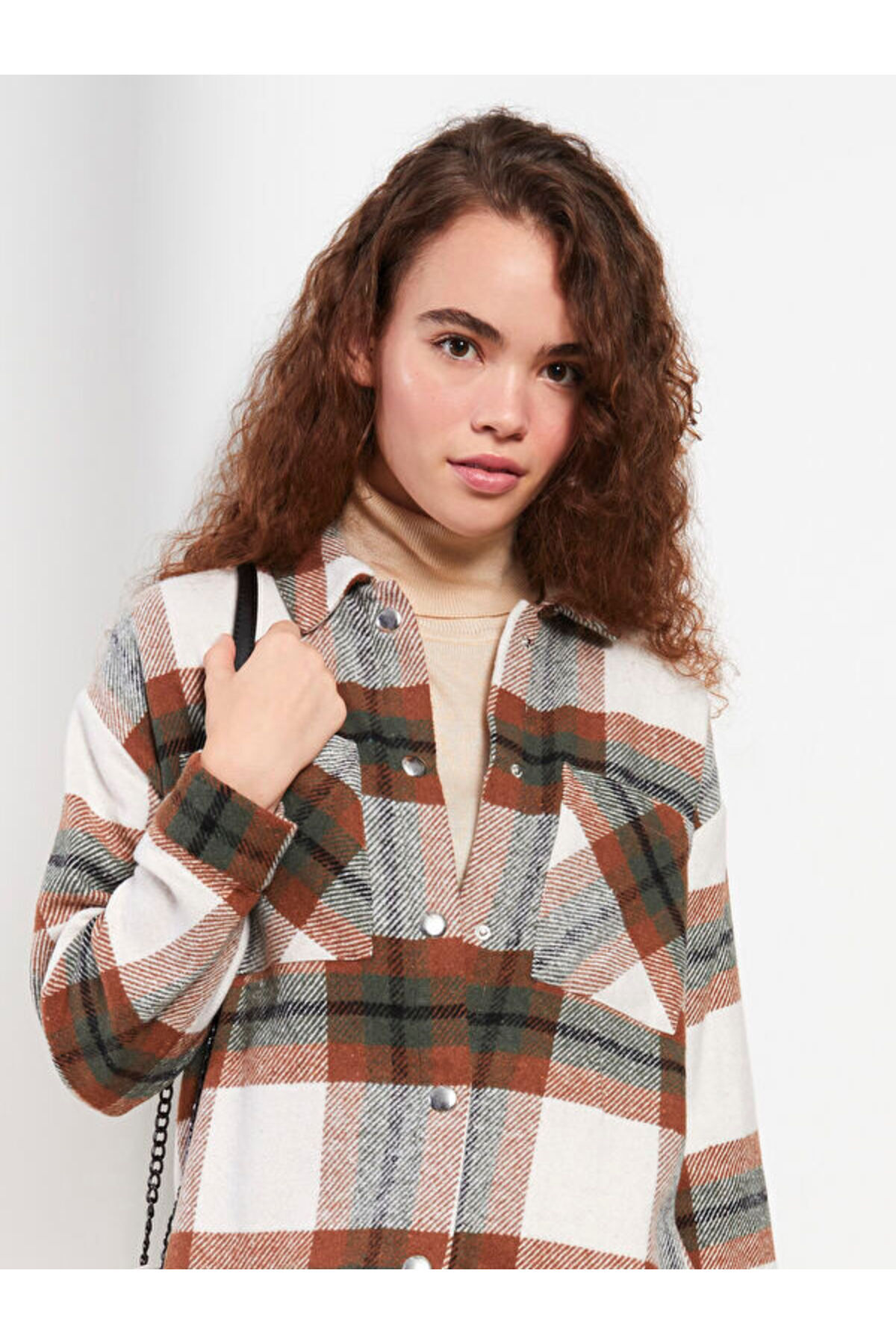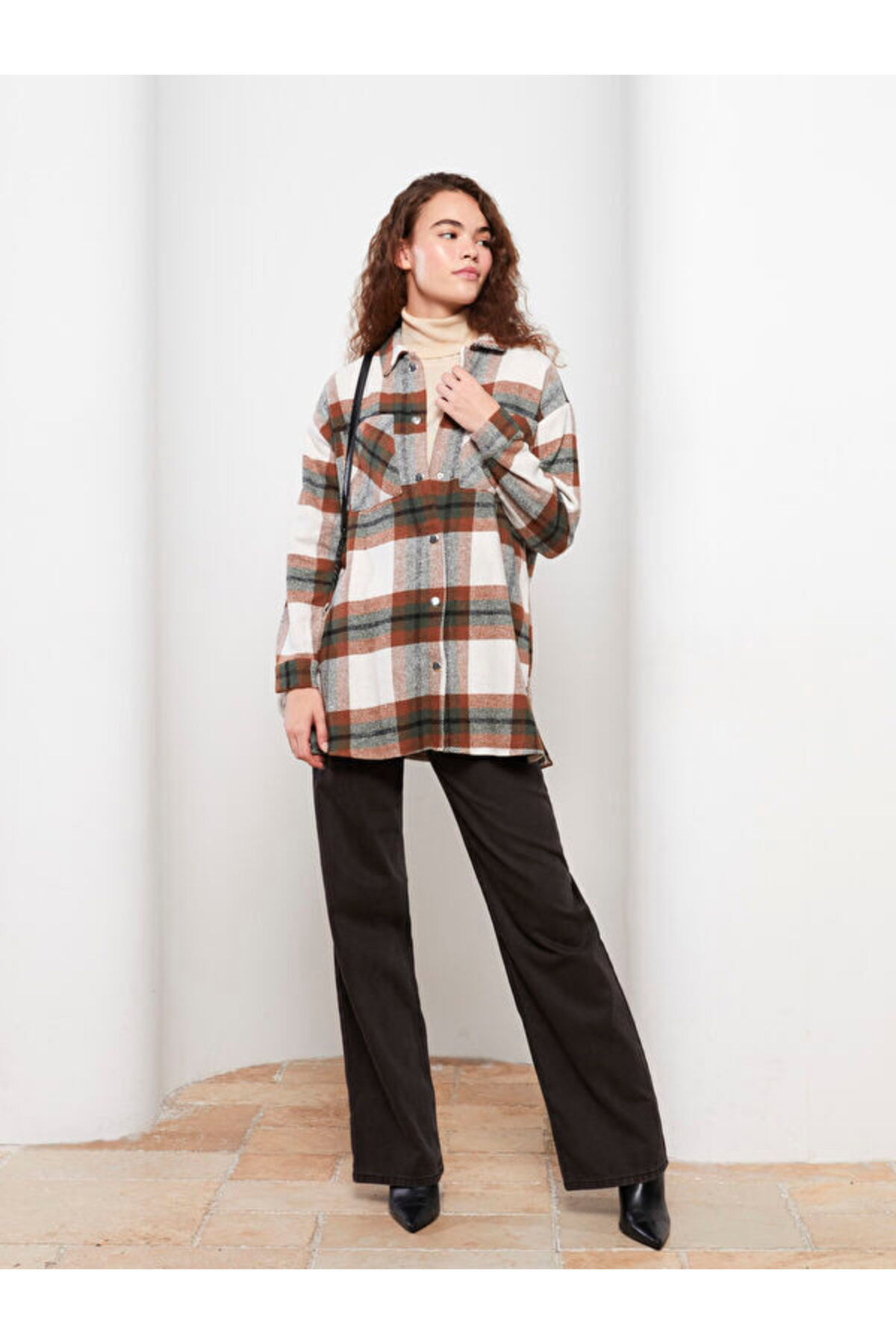 Ekose Uzun Kollu Oversize Gabardin Kadın Oduncu Gömlek Ceket Ekose Uzun Kollu Oversize Gabardin Kadın Oduncu Gömlek Ceket W2FG11Z8-Liwensa 34