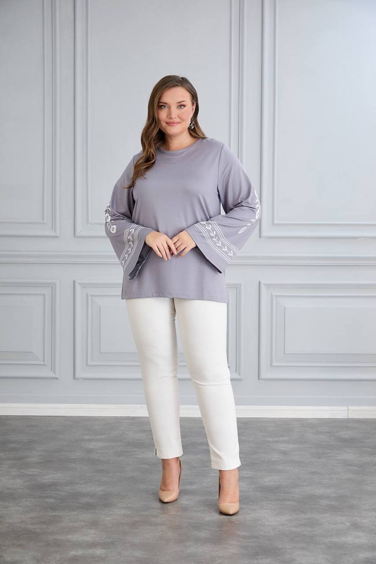 Nakış Detaylı Esnek Büyük Beden Kadın Tunik Bluz Nakış Detaylı Esnek Büyük Beden Kadın Tunik Bluz 53-581 5XL