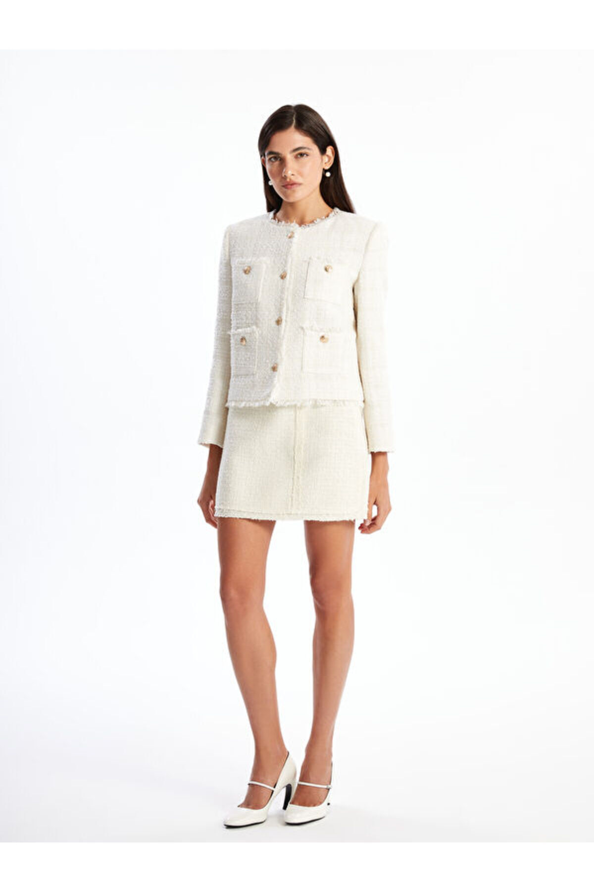 Bisiklet Yaka Dokulu Kadın Tüvit Ceket Bisiklet Yaka Dokulu Kadın Tüvit Ceket W4IT36Z8-Liwensa 46