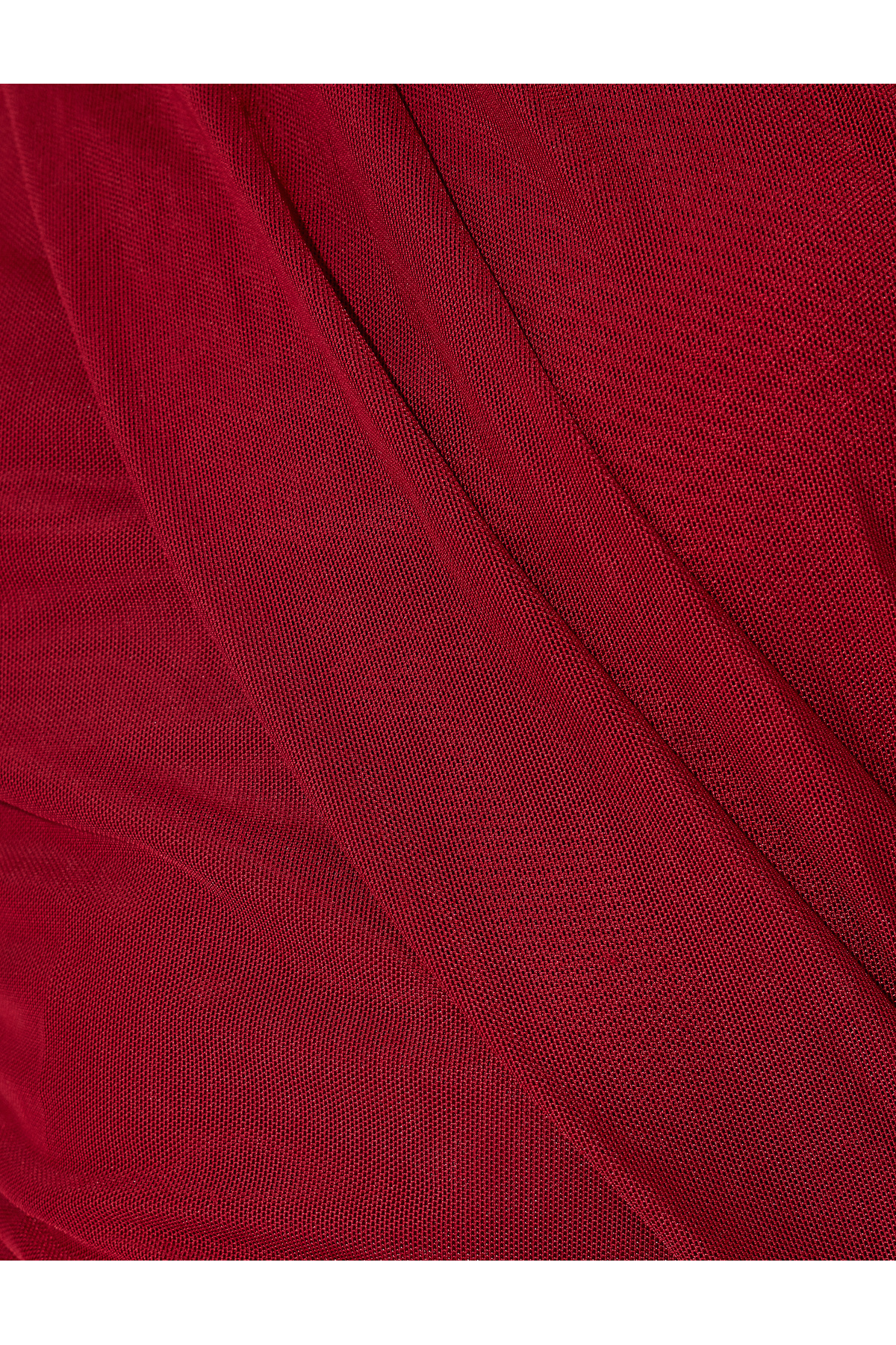 Mini Tül Elbise Kolsuz Drapeli Boyundan Bağlamalı Mini Tül Elbise Kolsuz Drapeli Boyundan Bağlamalı 5WAK80132FK XL