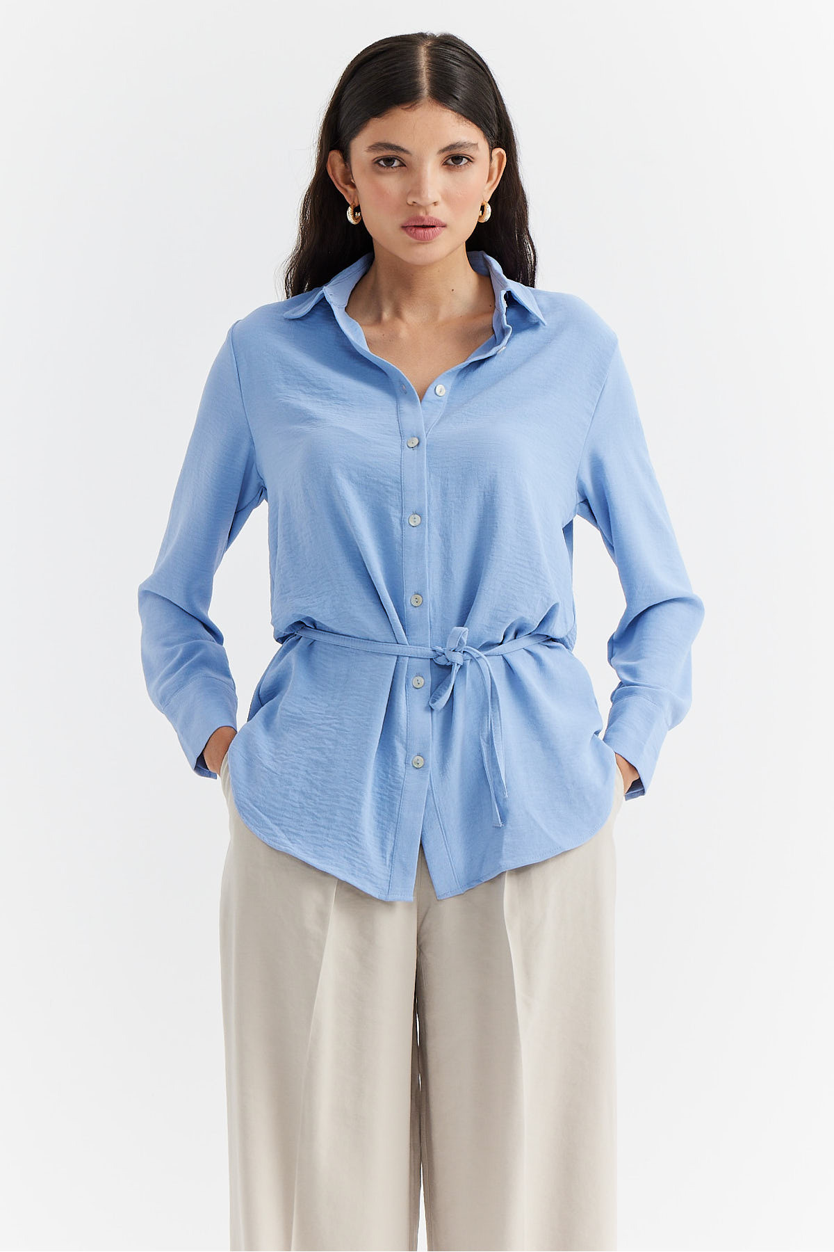 Kadın D Tokalı Saten Gömlek Kadın D Tokalı Saten Gömlek 3219181B5149 XL