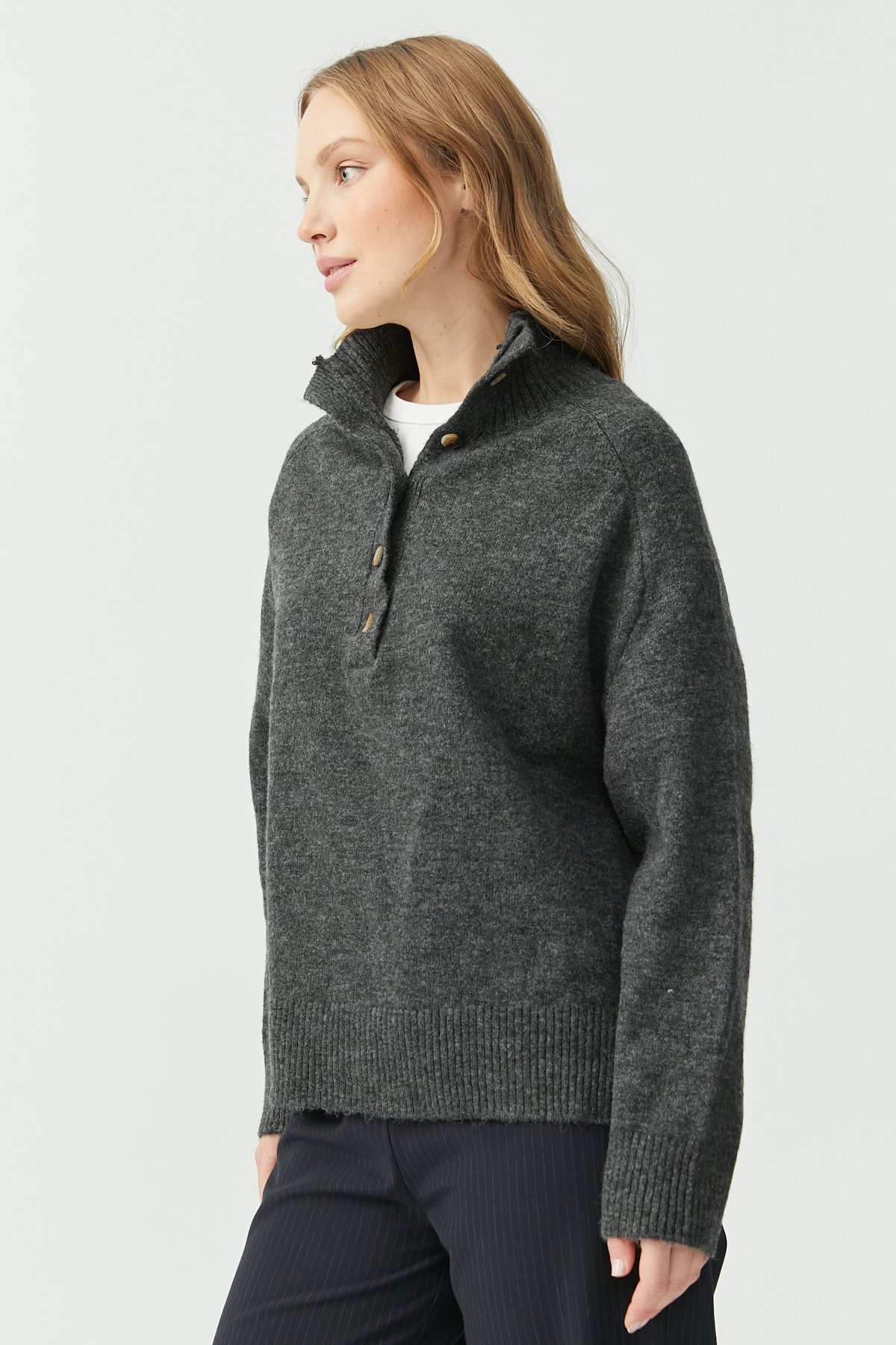 Kadın Yakası Düğmeli Triko Kazak Kadın Yakası Düğmeli Triko Kazak 3217261EM1172 L