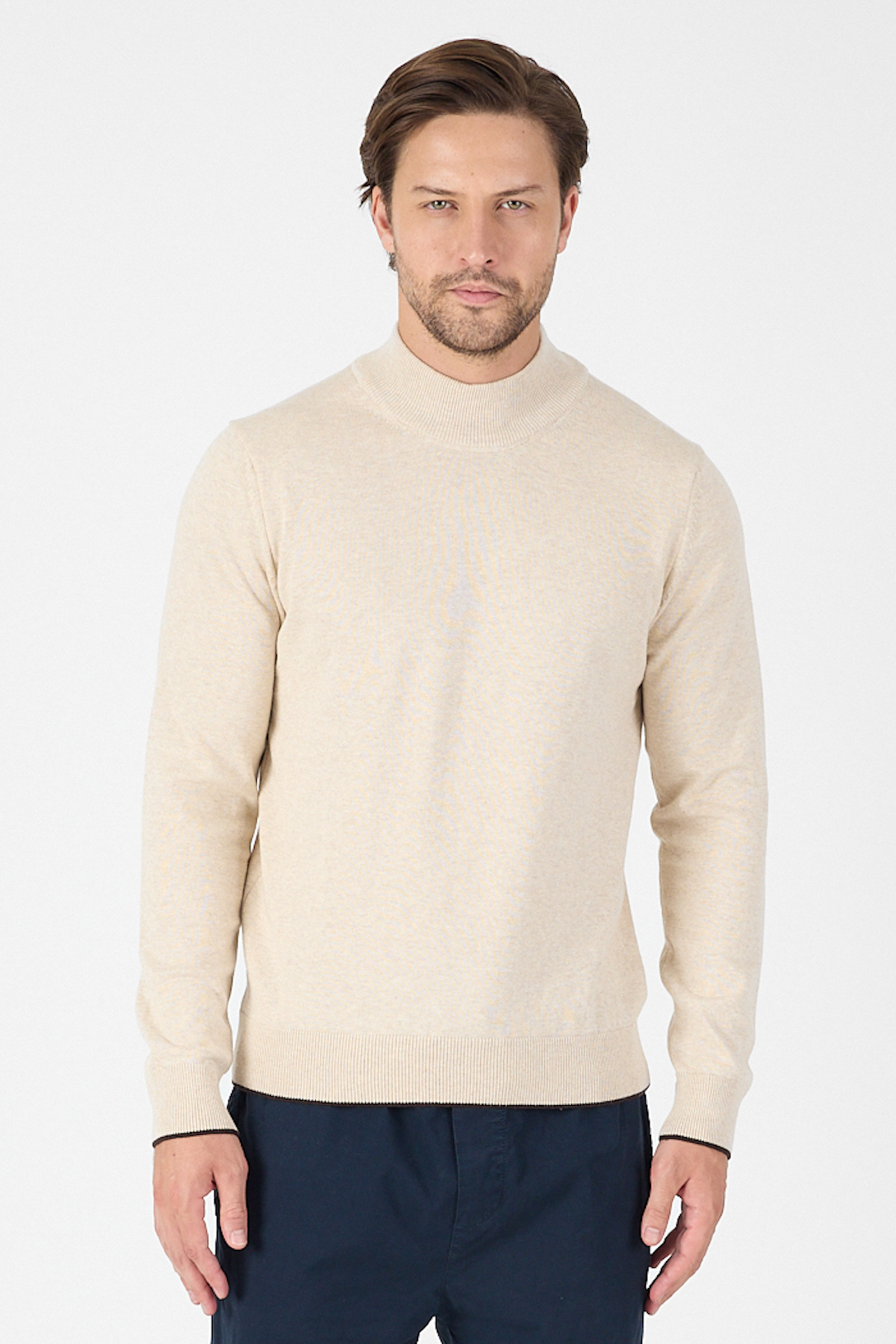 Kaşmir-İpek-Yün Karışım Yarım Balıkçı Yaka Açık Bej Kazak Kaşmir-İpek-Yün Karışım Yarım Balıkçı Yaka Açık Bej Kazak IC1317|600 XL