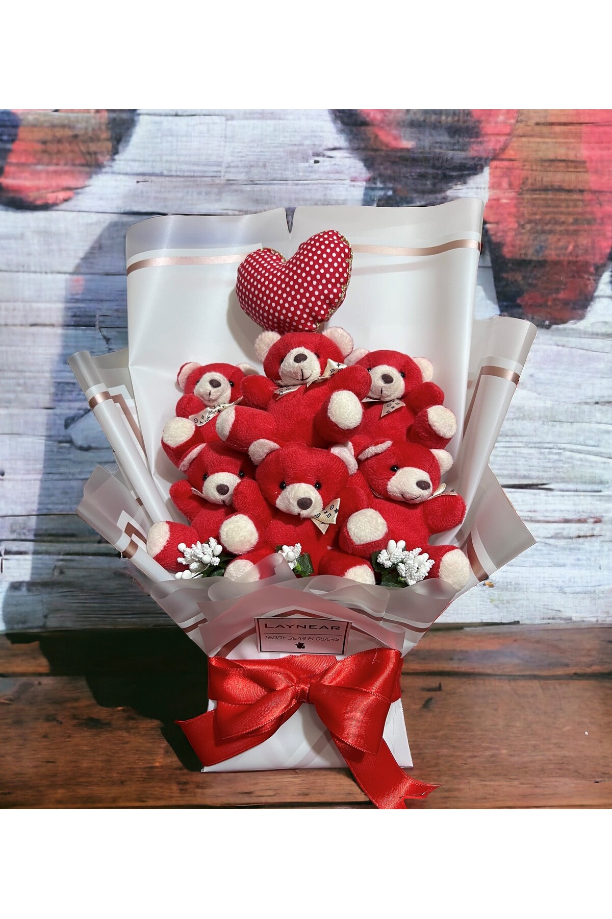 Premium Pembe Sevimli Peluş Ayıcıklar Pembe Vazo Hediye Çiçek Tasarımlı Buket 104831048