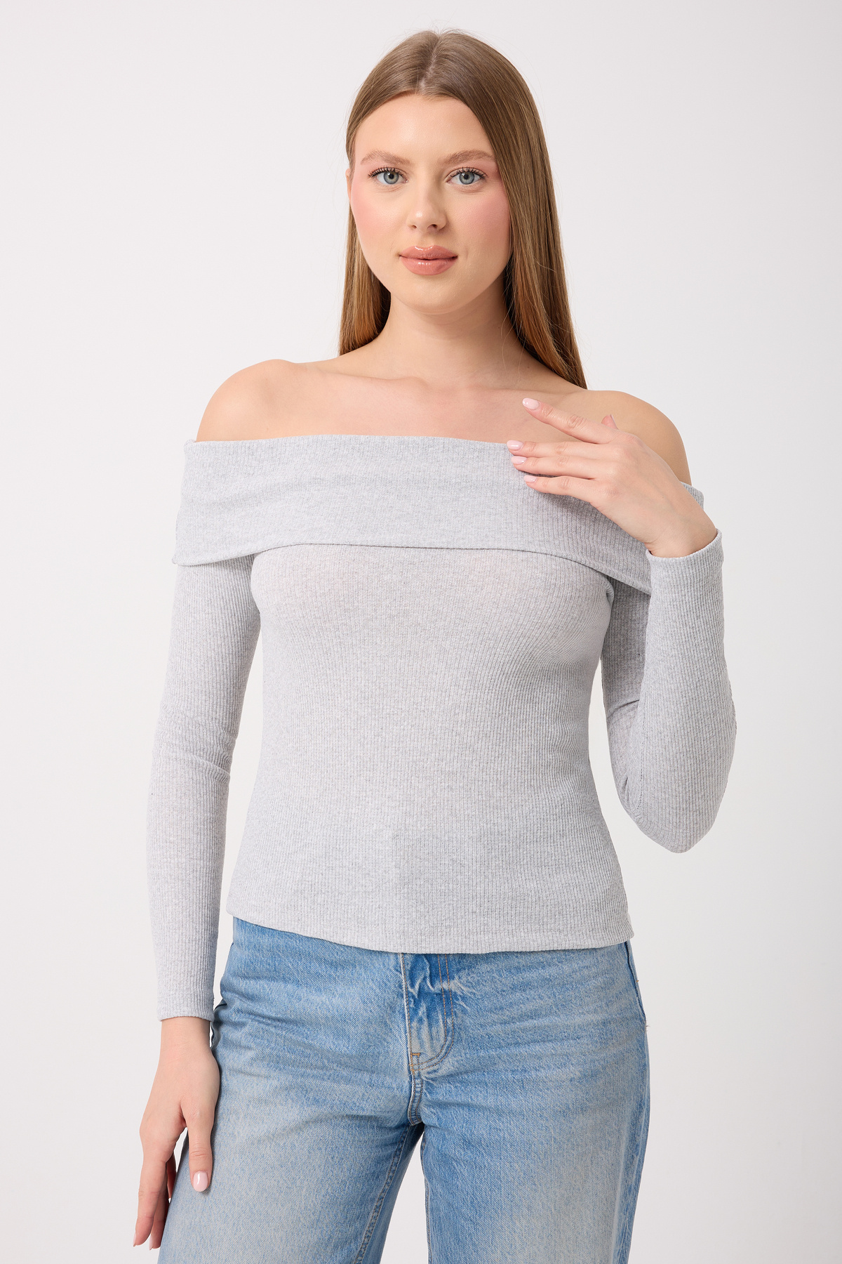 Kadın Madonna Yaka Fitilli Kaşkorse Bluz Kadın Madonna Yaka Fitilli Kaşkorse Bluz 5010 L