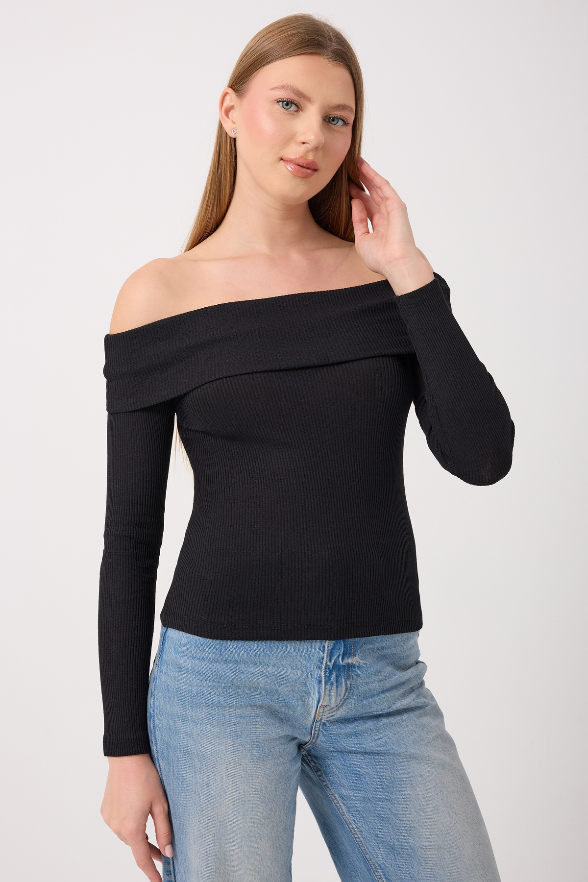 Kadın Madonna Yaka Fitilli Kaşkorse Bluz Kadın Madonna Yaka Fitilli Kaşkorse Bluz 5010 L