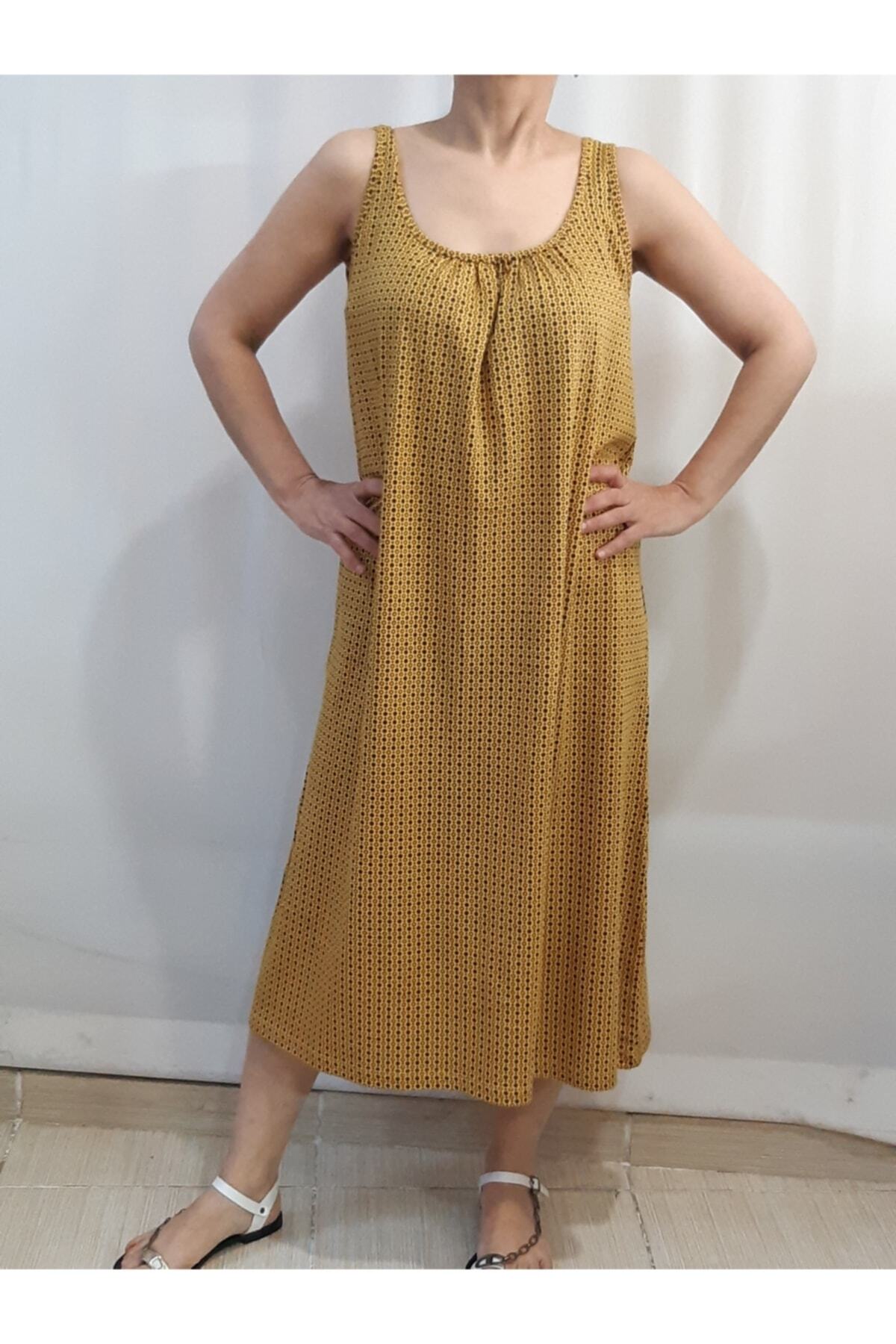 Önü Arkası Büzgülü Desenli Biye Detaylı Askılı Bordo Elbise Önü Arkası Büzgülü Desenli Biye Detaylı Askılı Bordo Elbise mertcanbutik105 56-58