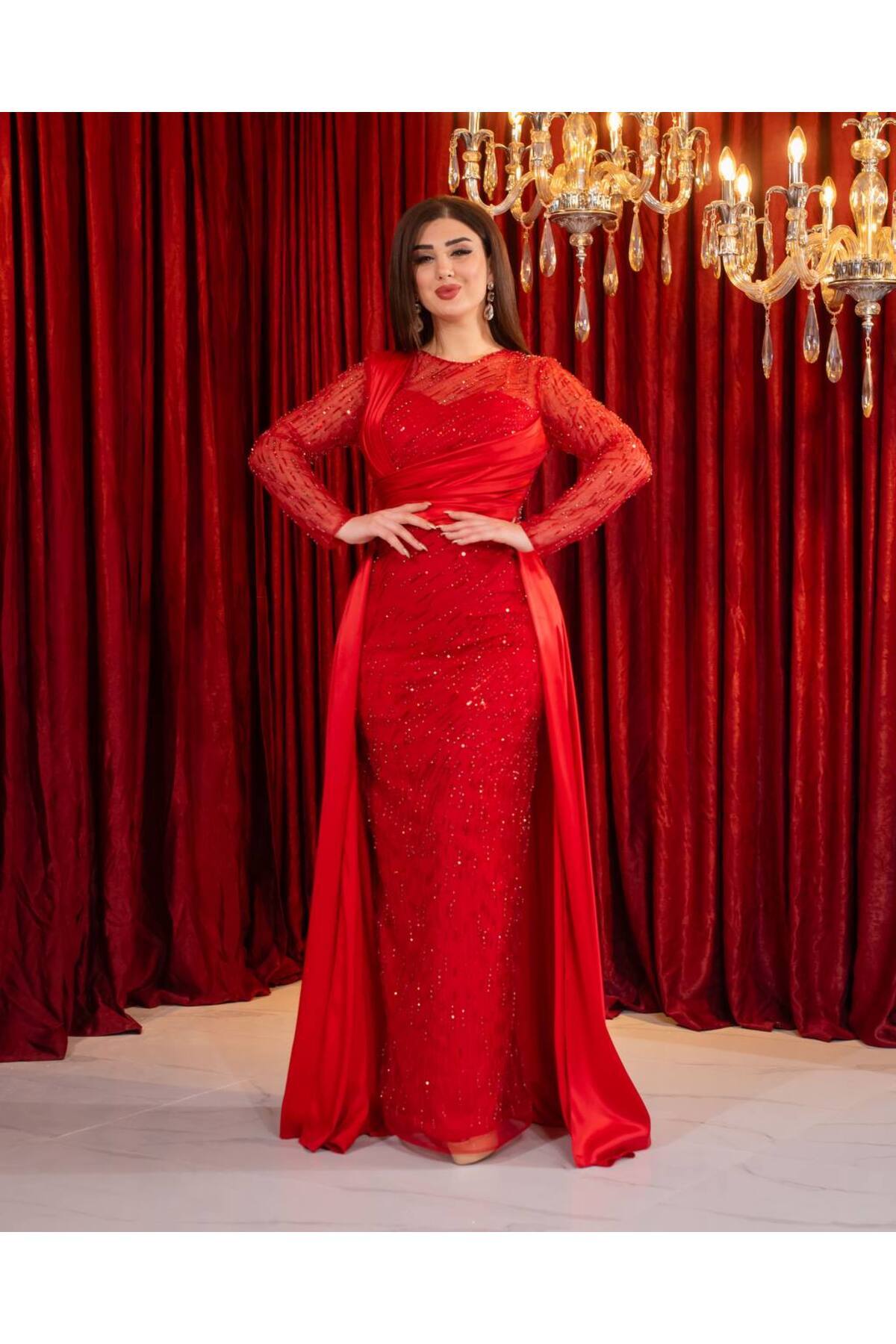 Kraliçe Stili Kristal Baskı Pelerinli Abiye Kraliçe Stili Kristal Baskı Pelerinli Abiye 111125 50
