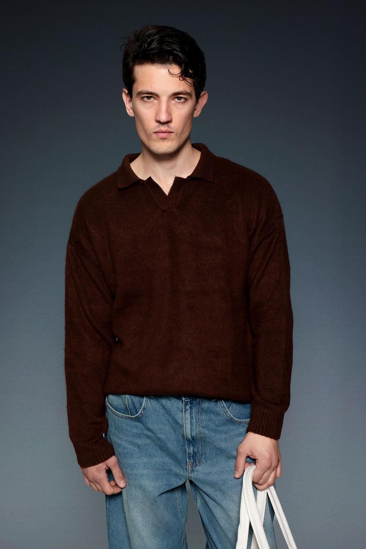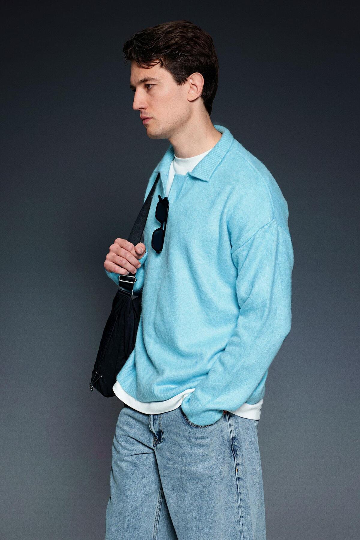 Erkek Polo Yaka Yumuşak Dokulu Oversize Kazak Bebek Mavi Erkek Polo Yaka Yumuşak Dokulu Oversize Kazak Bebek Mavi KZK.0059 2XL