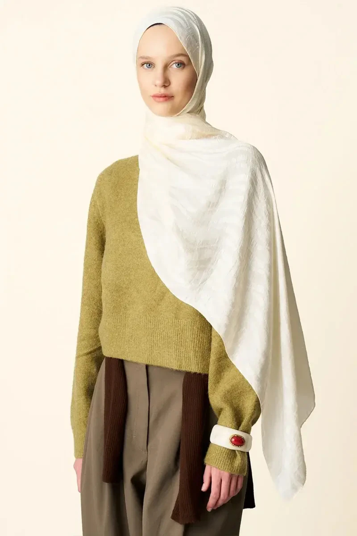 Premium Jakar Şal Dalga Desen - Kahverengi Premium Jakar Şal Dalga Desen - Kahverengi T1140-1 تک سایز