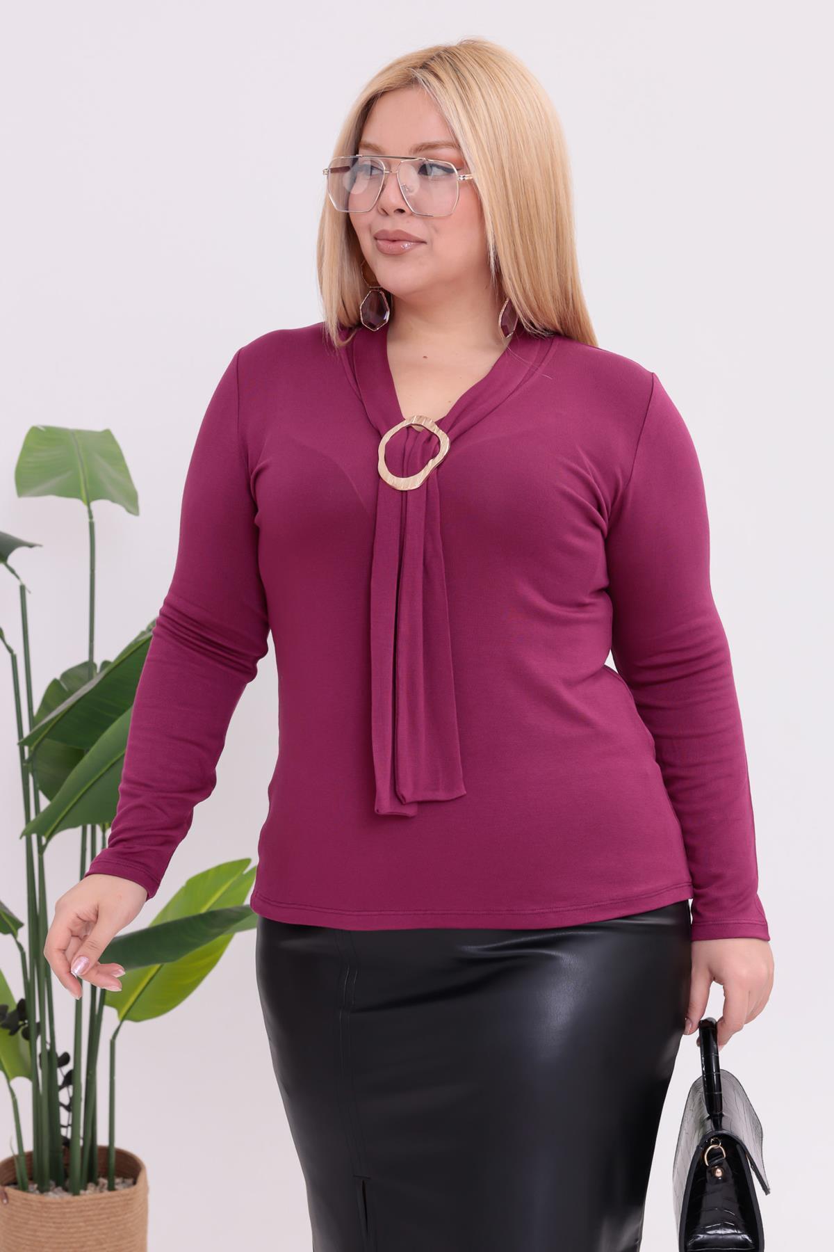 Büyük Beden Fuları Gold Aksesuarlı Bluz Büyük Beden Fuları Gold Aksesuarlı Bluz 6K-BLZ00056 50