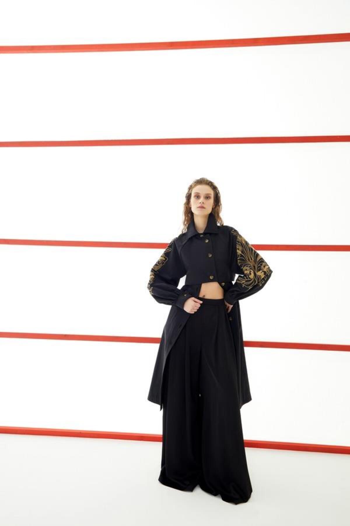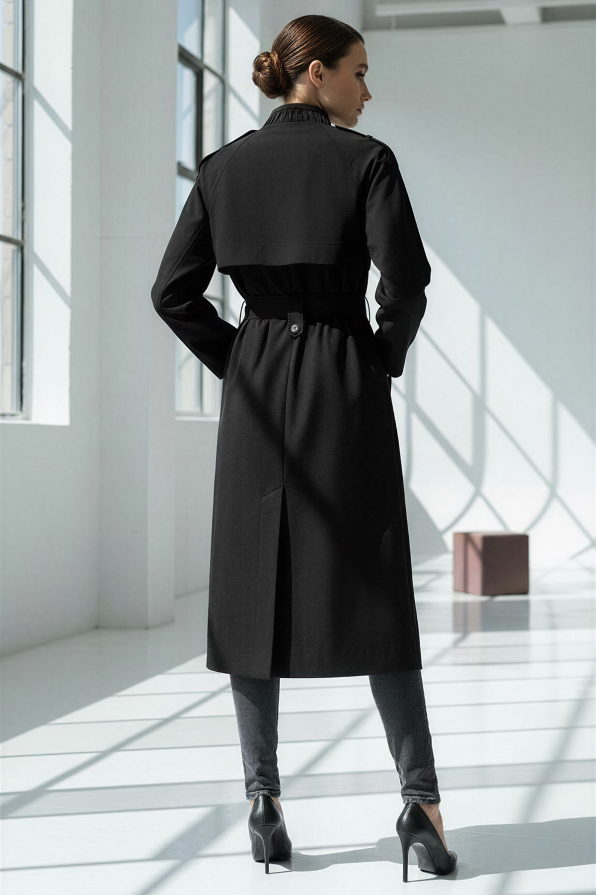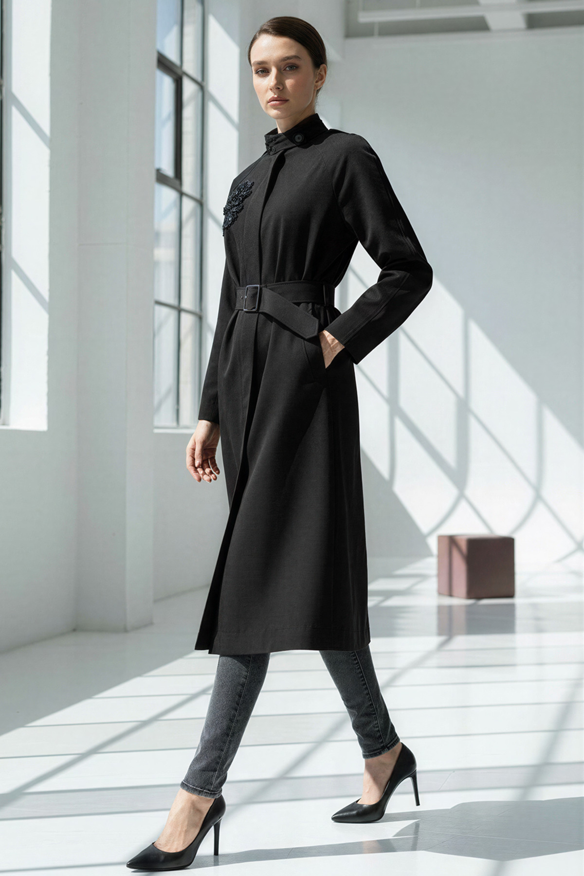Taş İşlemeli Dik Yaka Kemerli Regular Trençkot Taş İşlemeli Dik Yaka Kemerli Regular Trençkot E25K05103002 2