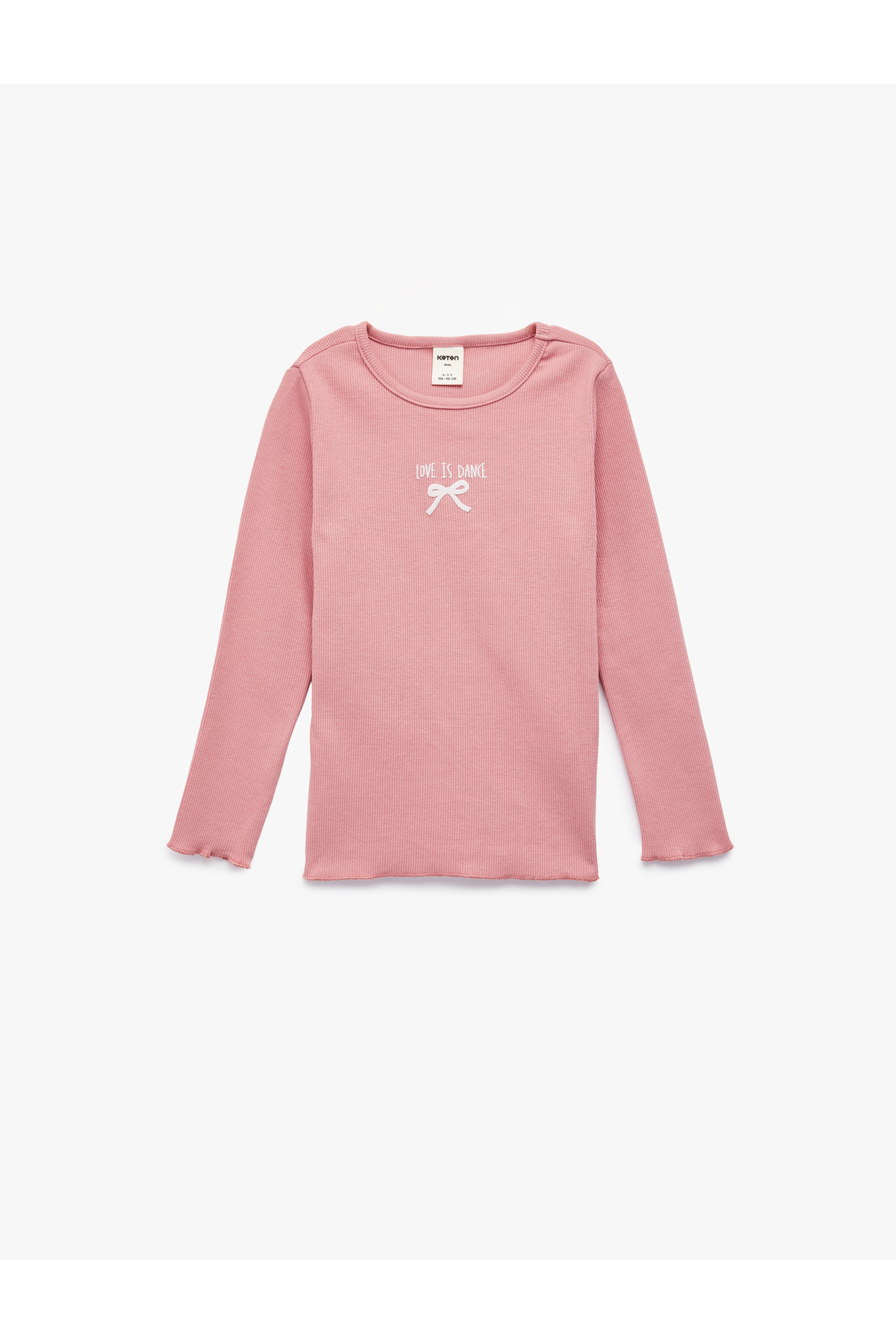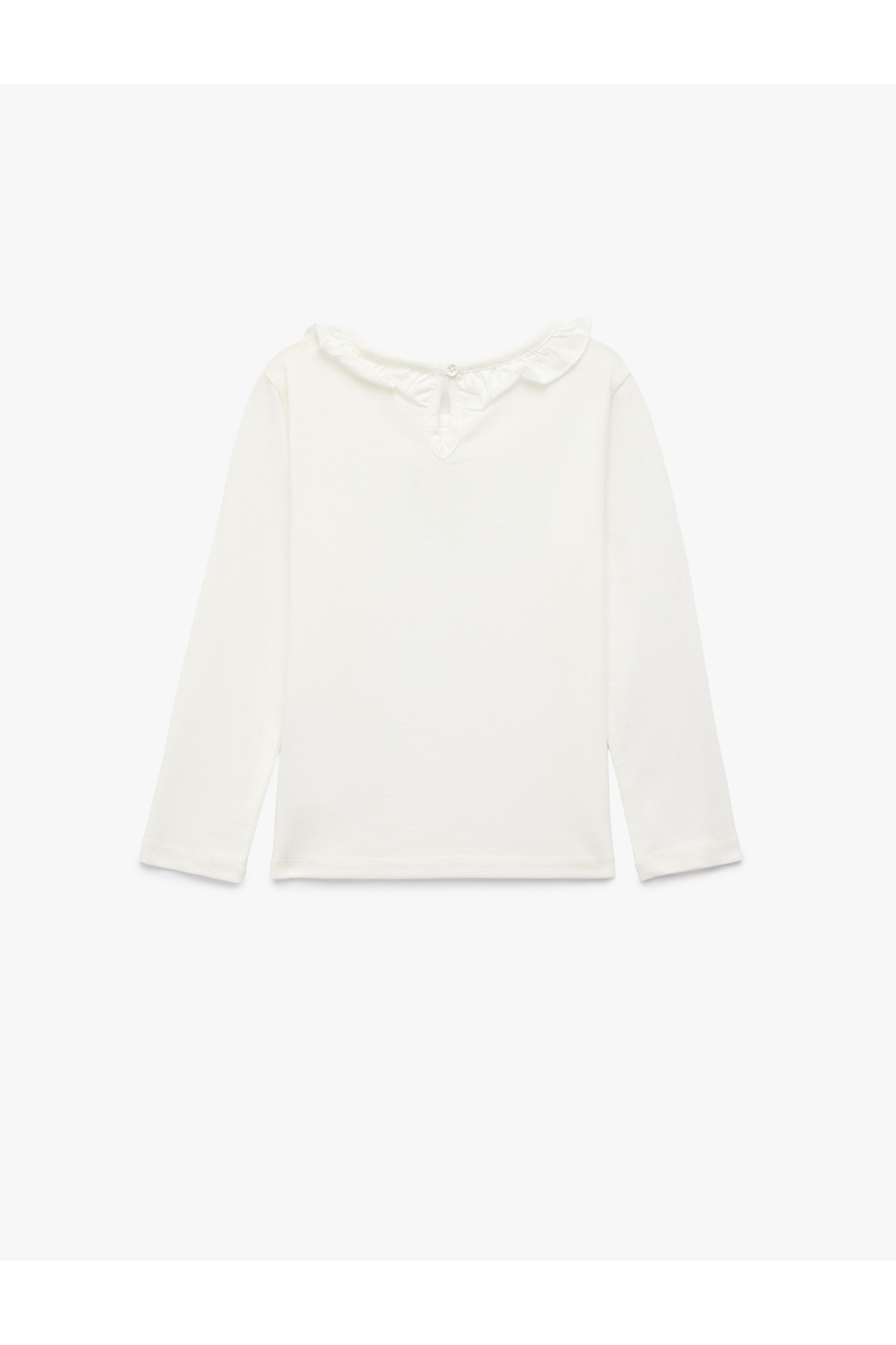 Pamuklu Fırfır Detaylı Çiçek Baskılı Bisiklet Yaka Uzun Kollu Tişört Pamuklu Fırfır Detaylı Çiçek Baskılı Bisiklet Yaka Uzun Kollu Tişört 6WMG10142AK 4-5 Yaş