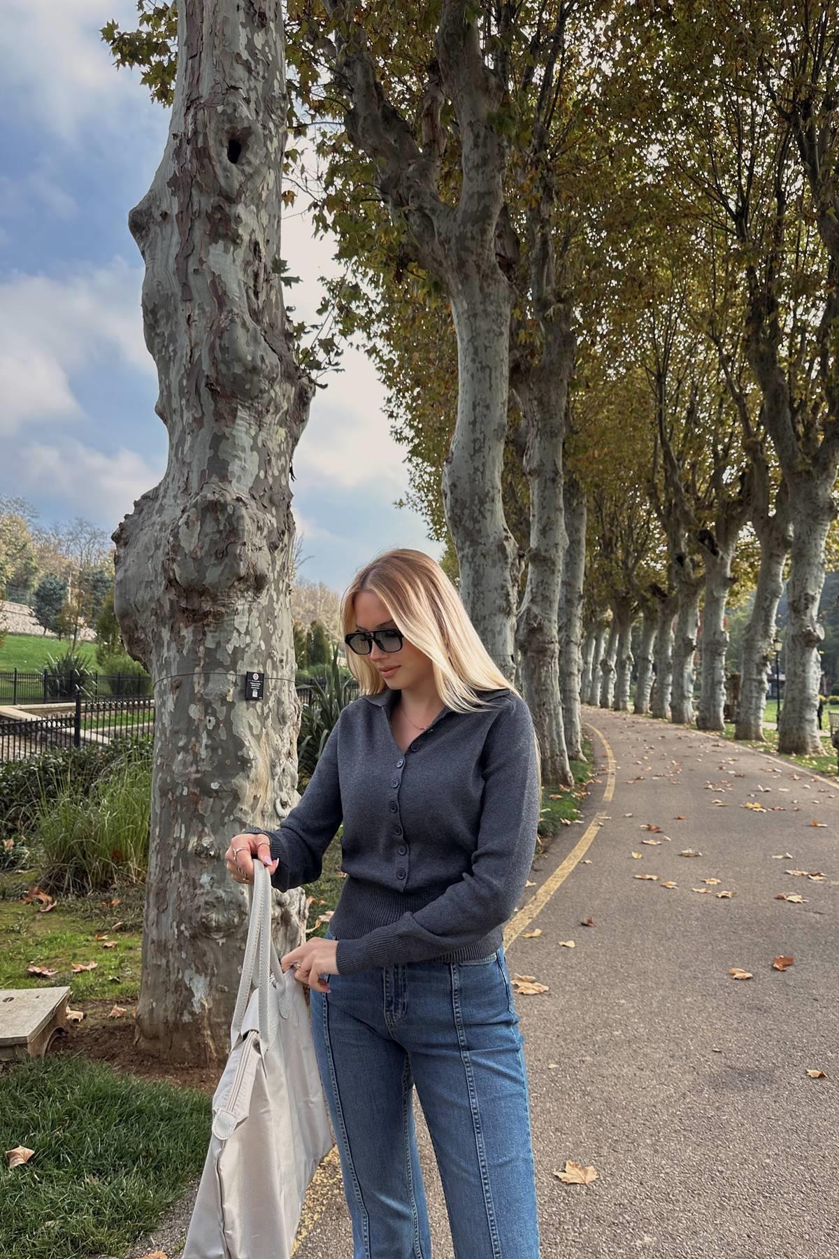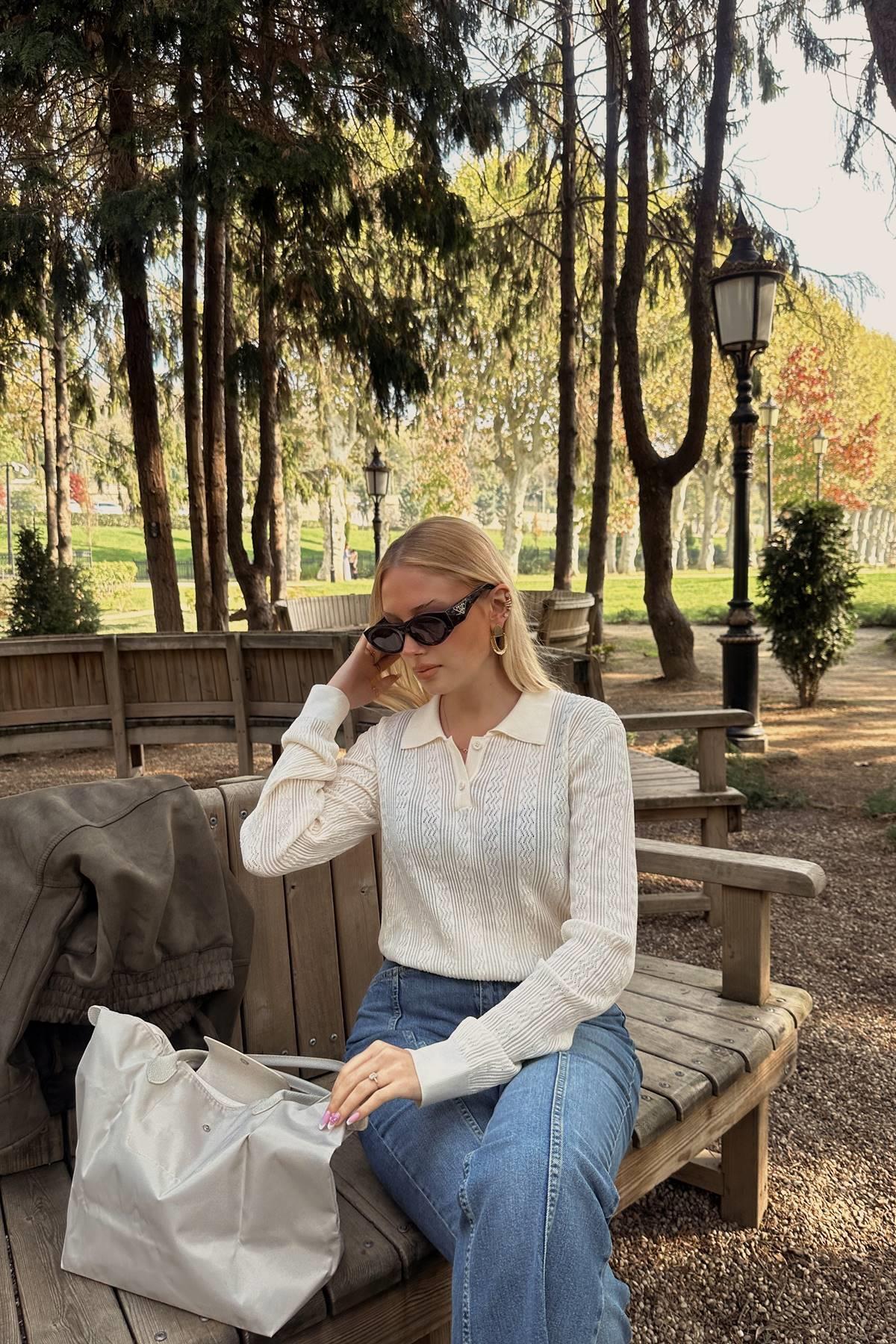 POLO YAKA DÜĞMELİ AJURLU TRIKO KAZAK POLO YAKA DÜĞMELİ AJURLU TRIKO KAZAK DLV10827 Standart