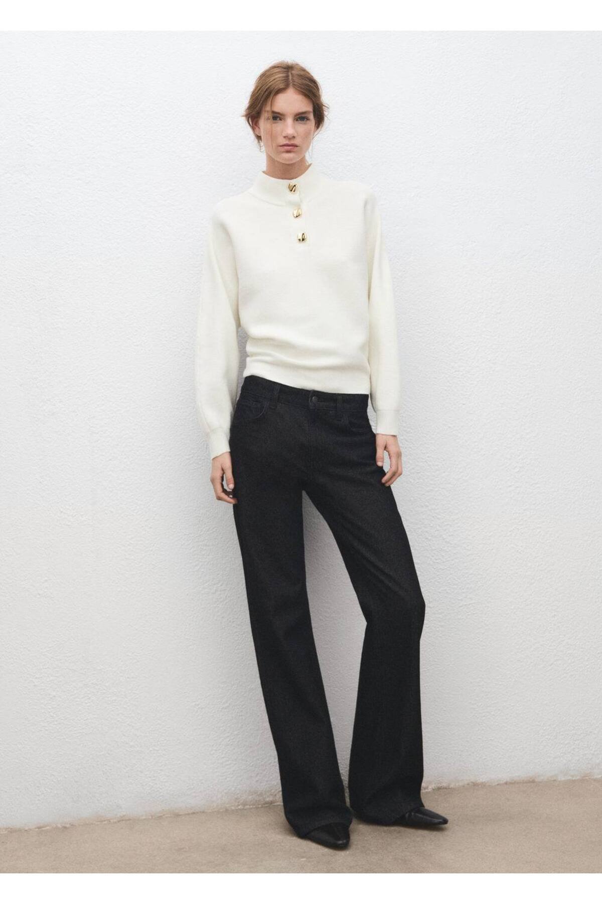 Mücevher düğmeli yüksek yaka kazak Mücevher düğmeli yüksek yaka kazak 27011312 XL