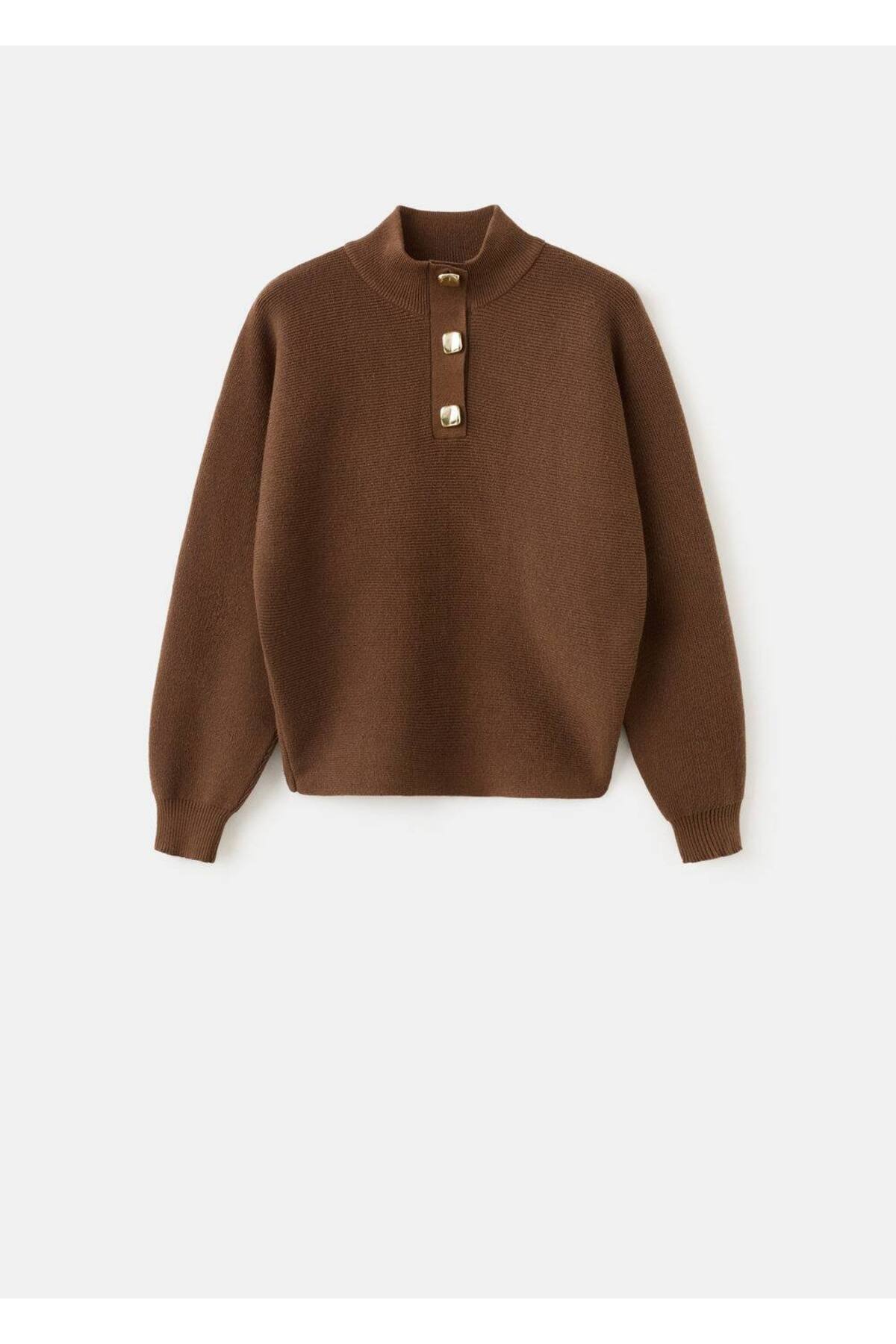 Mücevher düğmeli yüksek yaka kazak Mücevher düğmeli yüksek yaka kazak 27011312 XL