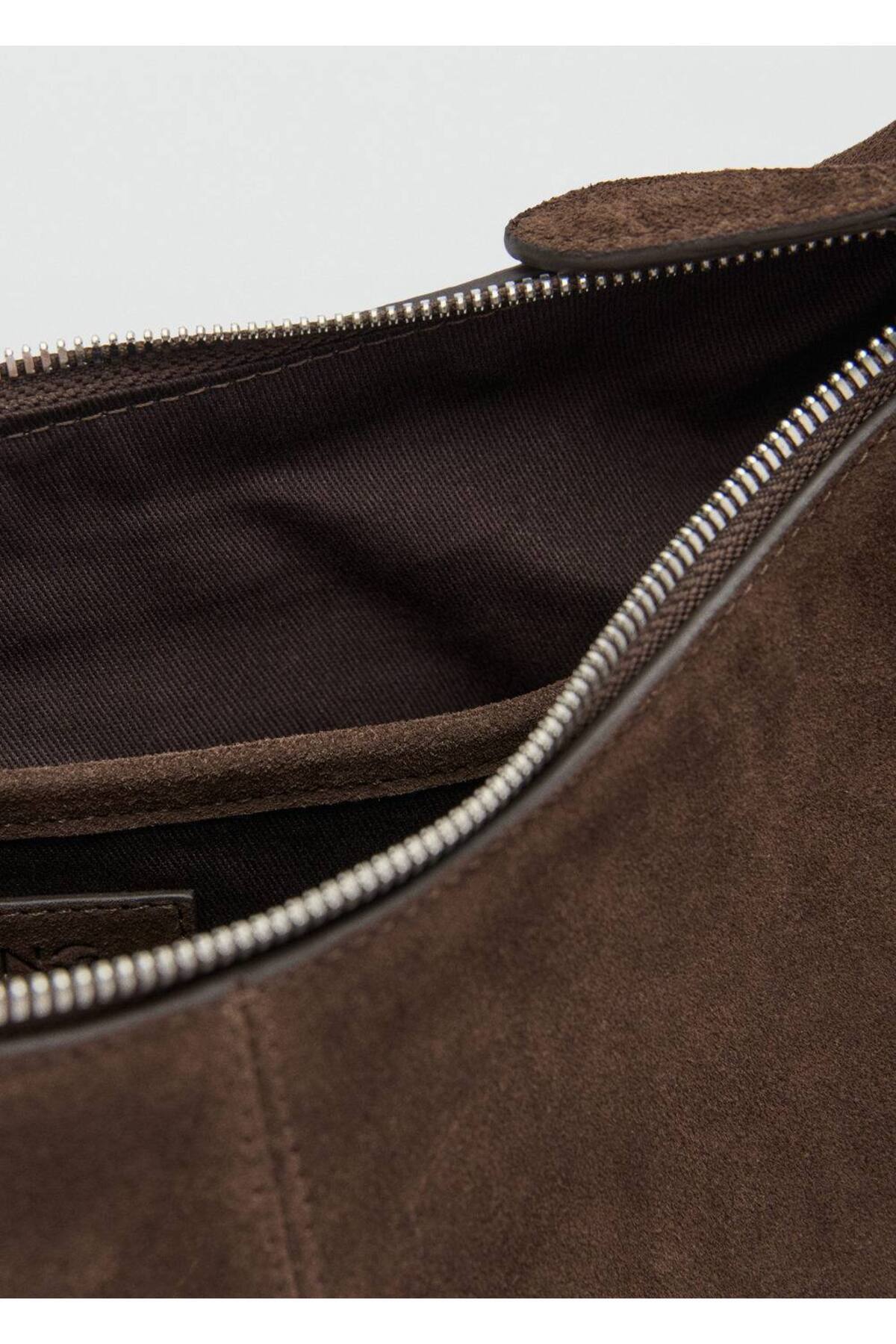 Kontrast dikişli süet omuz çantası Kontrast dikişli süet omuz çantası 27021233 تک سایز