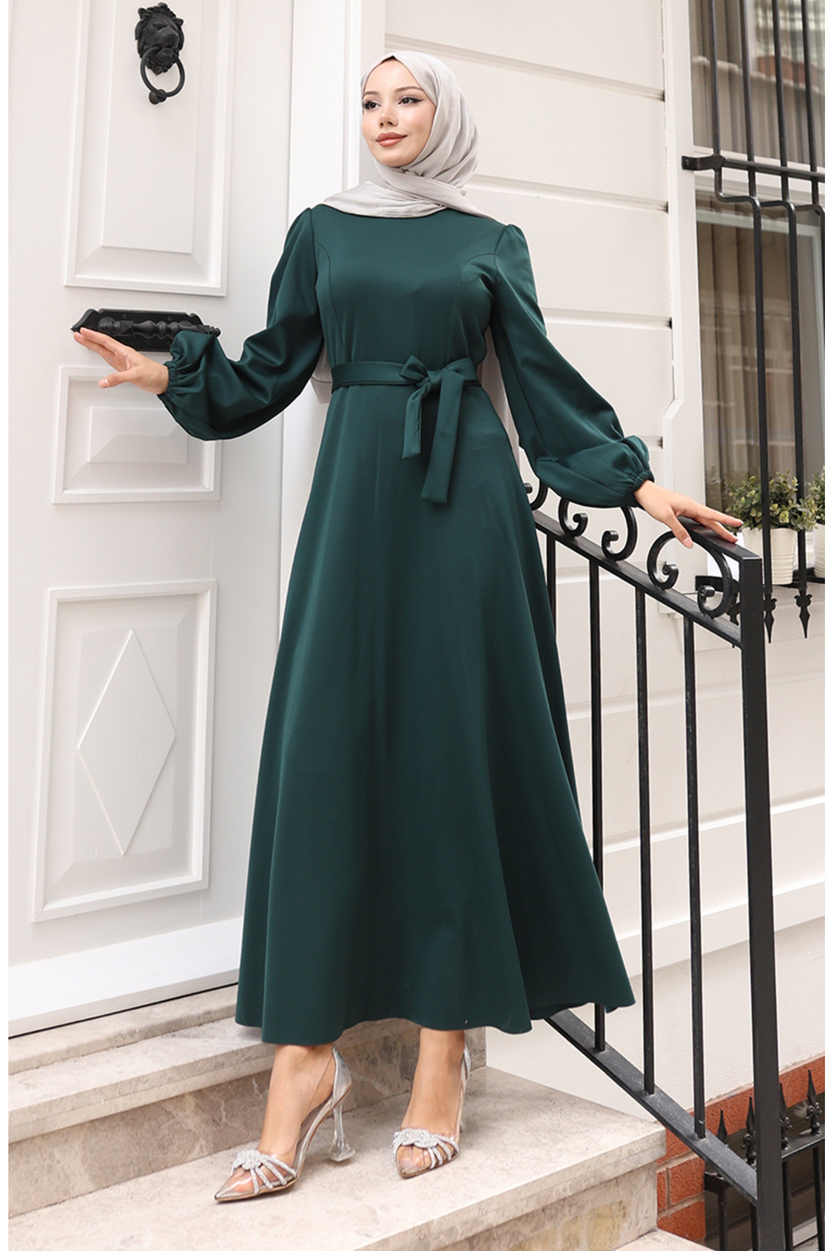 Kuplu Kolları Lastikli Sade Abiye Elbise 5614-04 Zümrüt Yeşili Kuplu Kolları Lastikli Sade Abiye Elbise 5614-04 Zümrüt Yeşili KSNENDRN5614 44