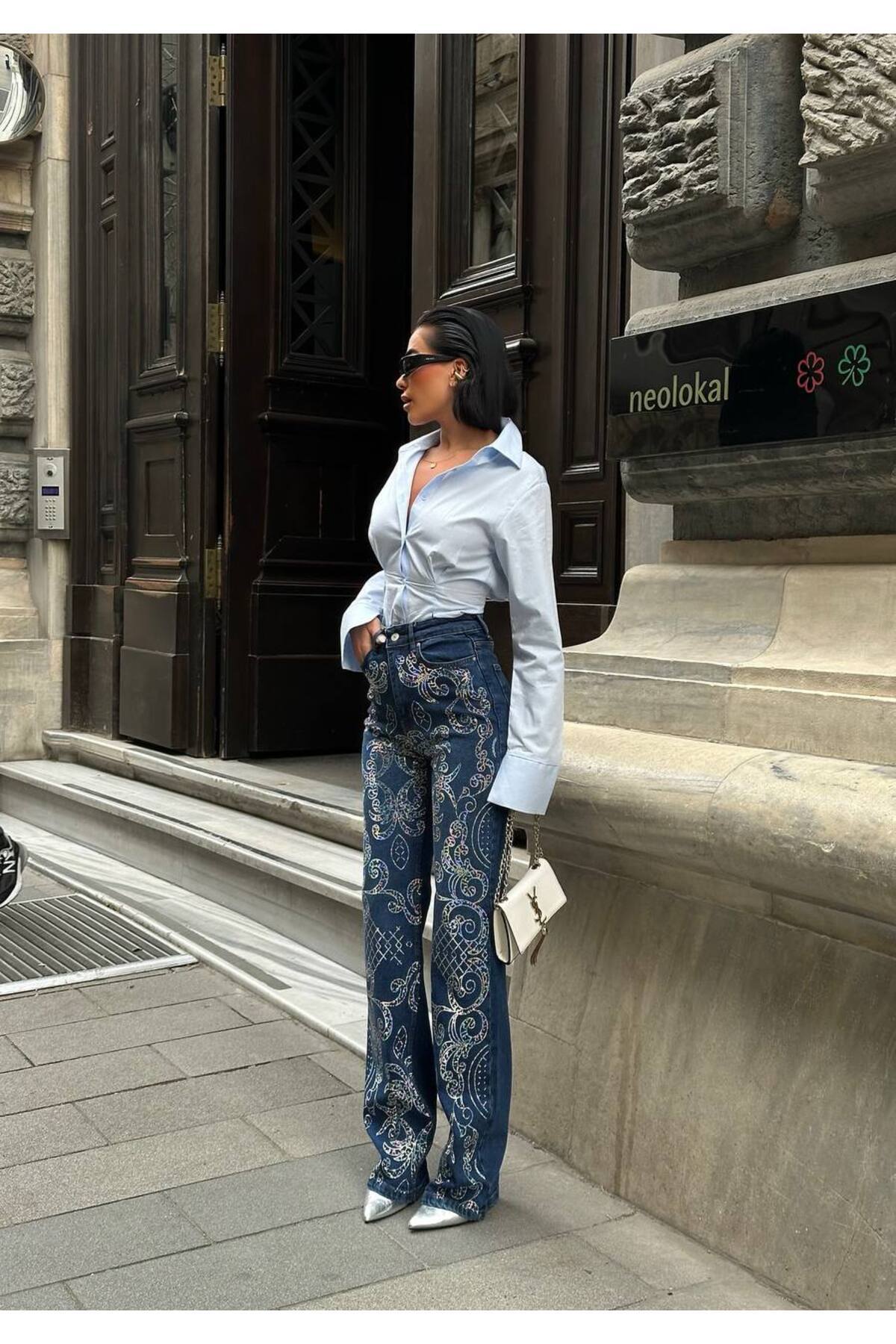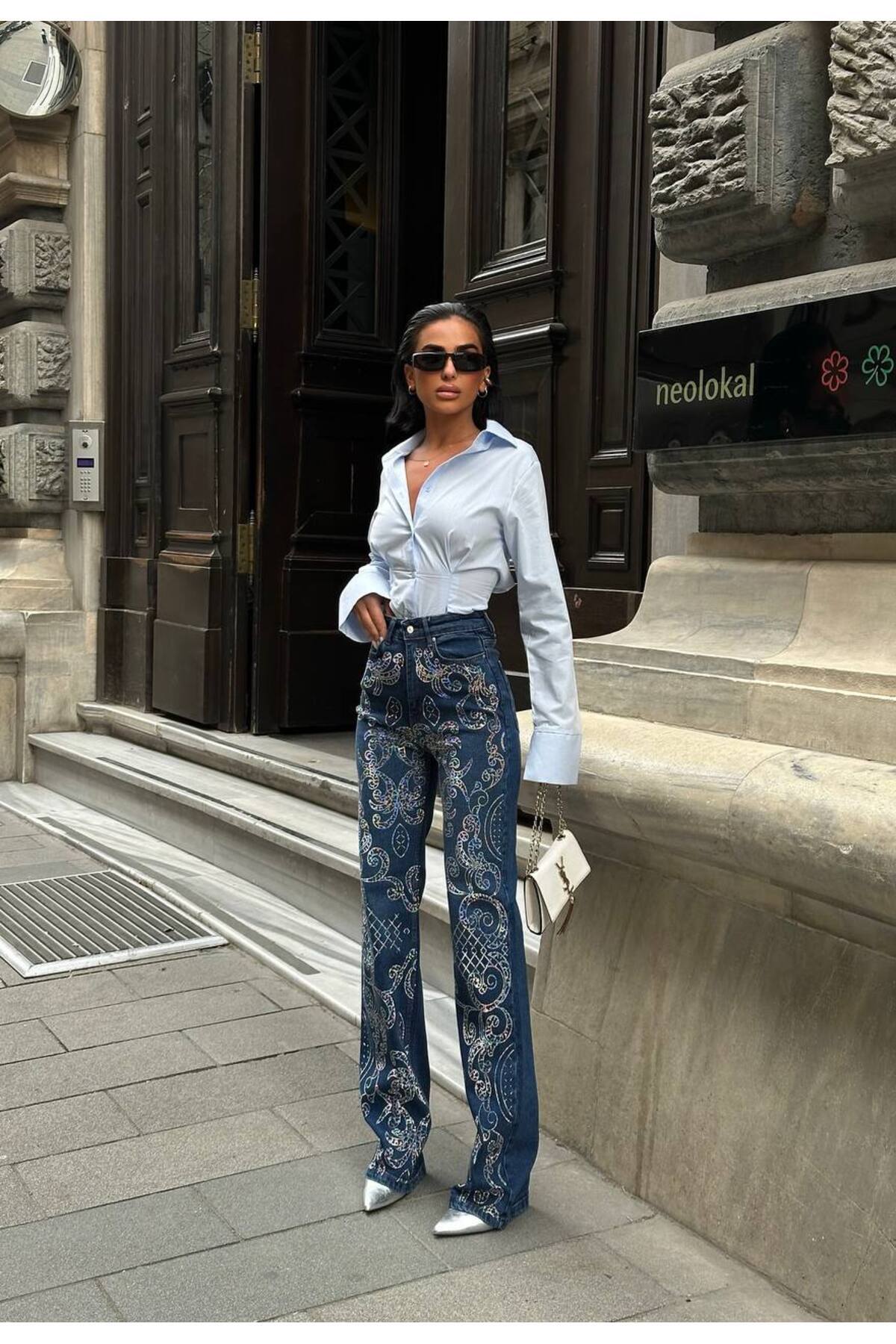 Kadın Jean Yüksek Bel Palazzo Likralı Esnek Kot Pantolon Kadın Jean Yüksek Bel Palazzo Likralı Esnek Kot Pantolon Free1461 42