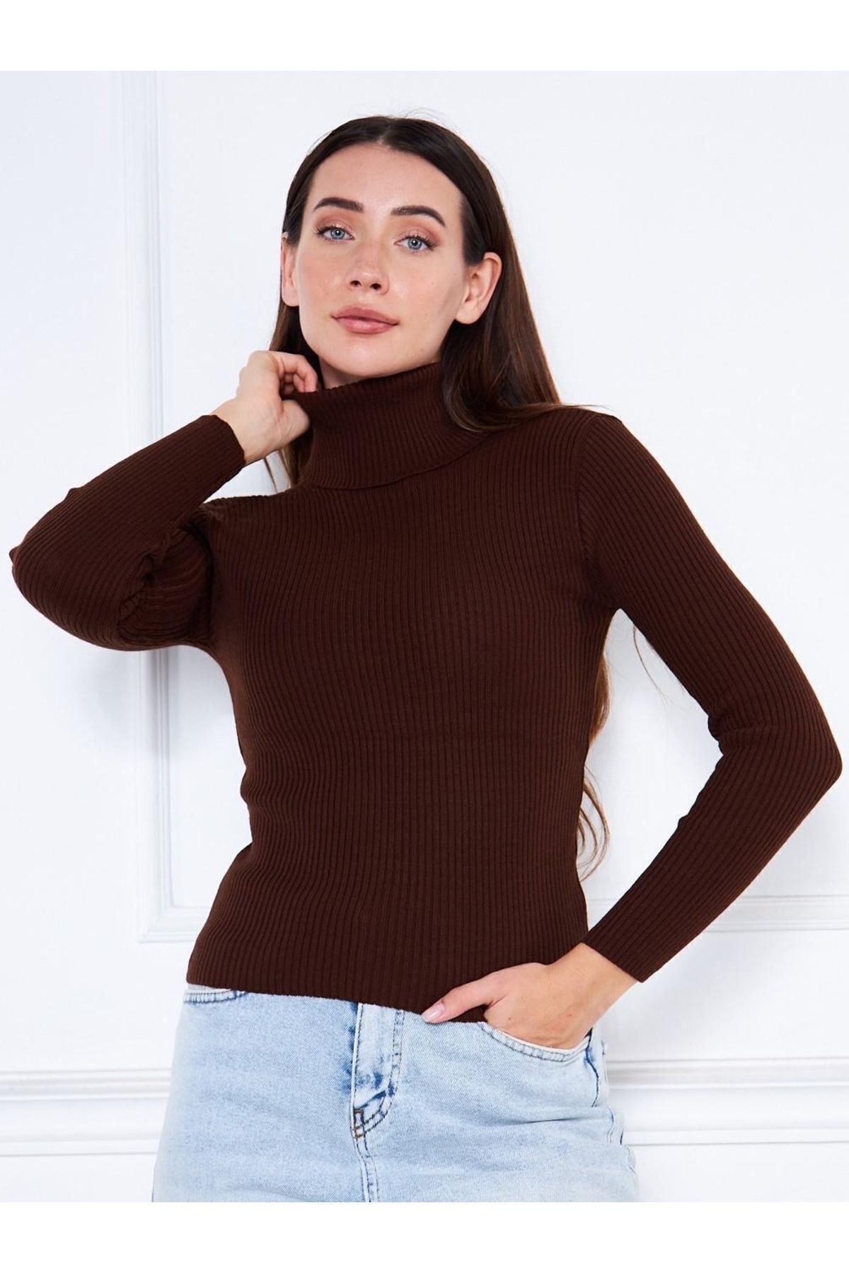 Kahverengi Balıkçı Yaka Uzun Kollu Triko Kazak Kahverengi Balıkçı Yaka Uzun Kollu Triko Kazak BL-1077 Standart