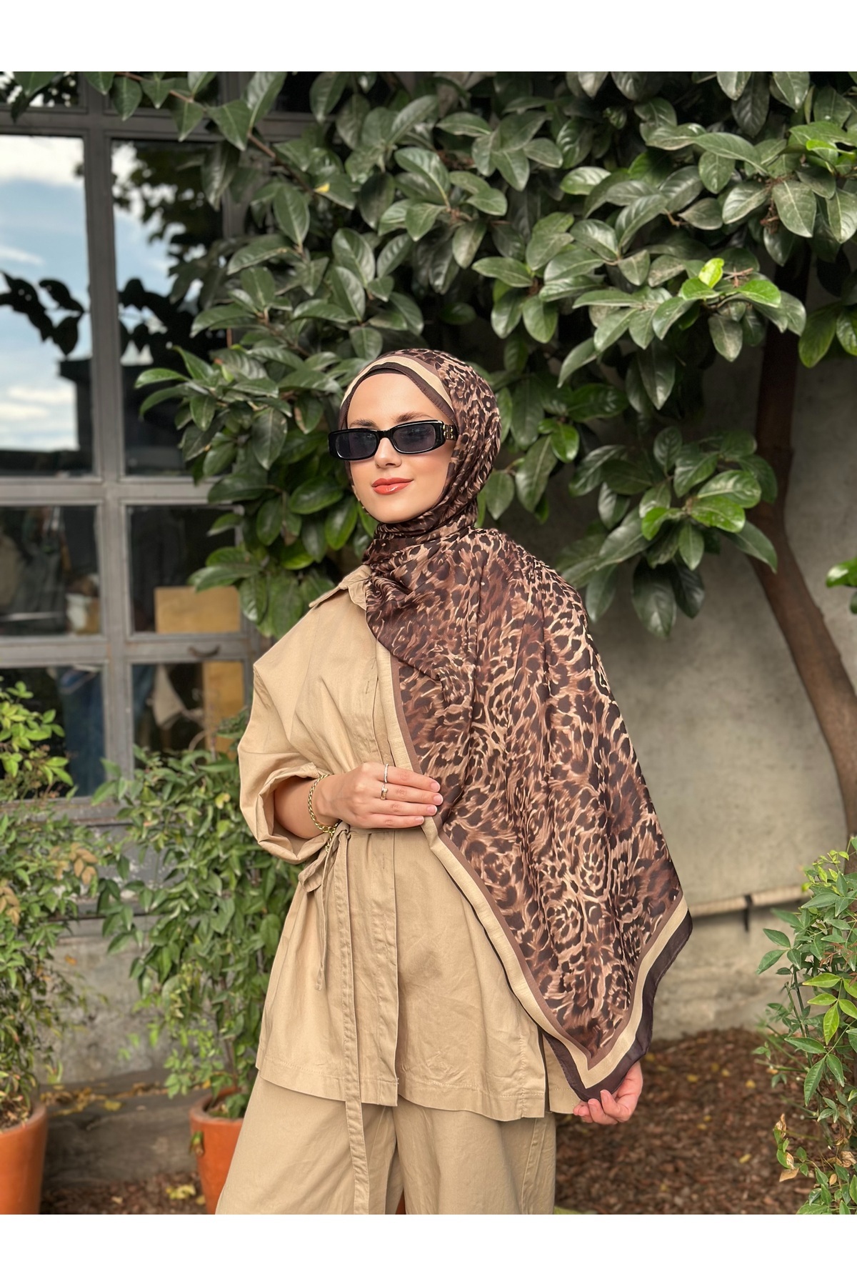 - Sahra Leopar Desen Şal - Koyu Kahverengi - Sahra Leopar Desen Şal - Koyu Kahverengi P159S2360 تک سایز