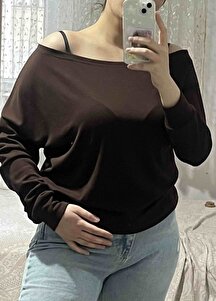 Kadın Kahve Yumuşak, açık omuzlu Sweatshirt Kadın Kahve Yumuşak, açık omuzlu Sweatshirt 8742 XL