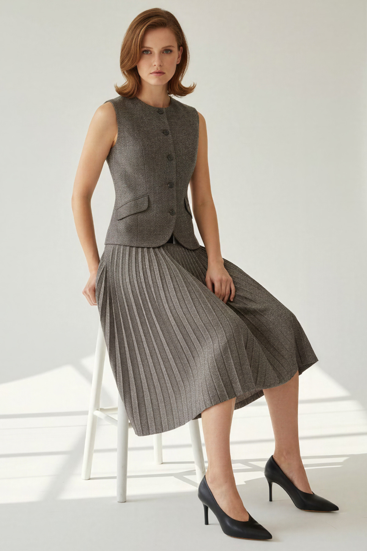 Balık Sırtı Desenli Pilisoley Yüksek Bel Tokalı Regular Midi Etek Balık Sırtı Desenli Pilisoley Yüksek Bel Tokalı Regular Midi Etek E25K05115012 42
