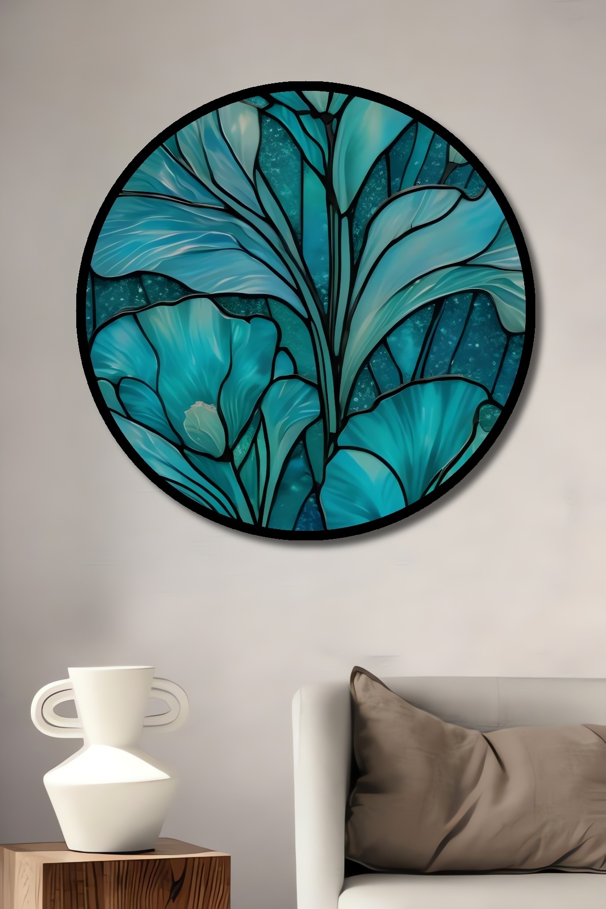 Akuamarin Rüyası Vitray Görünümlü Ahşap Dekoratif Tablo Yuvarlak Tablo Akuamarin Rüyası Vitray Görünümlü Ahşap Dekoratif Tablo Yuvarlak Tablo mstftb_3751_T 50 x 50