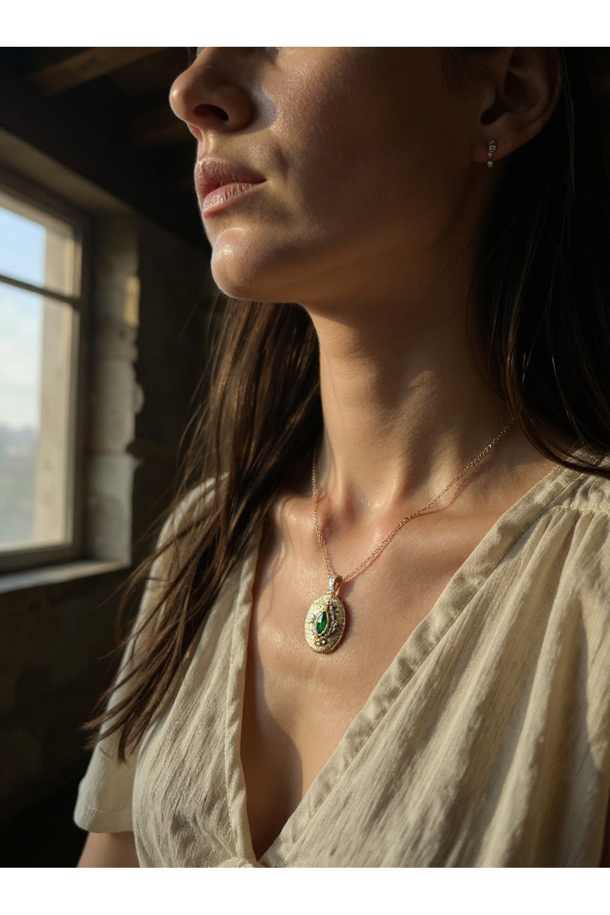 Yeşil Taşlı Vintage Altğn Kaplama Kolye Yeşil Taşlı Vintage Altğn Kaplama Kolye 300940 50 cm