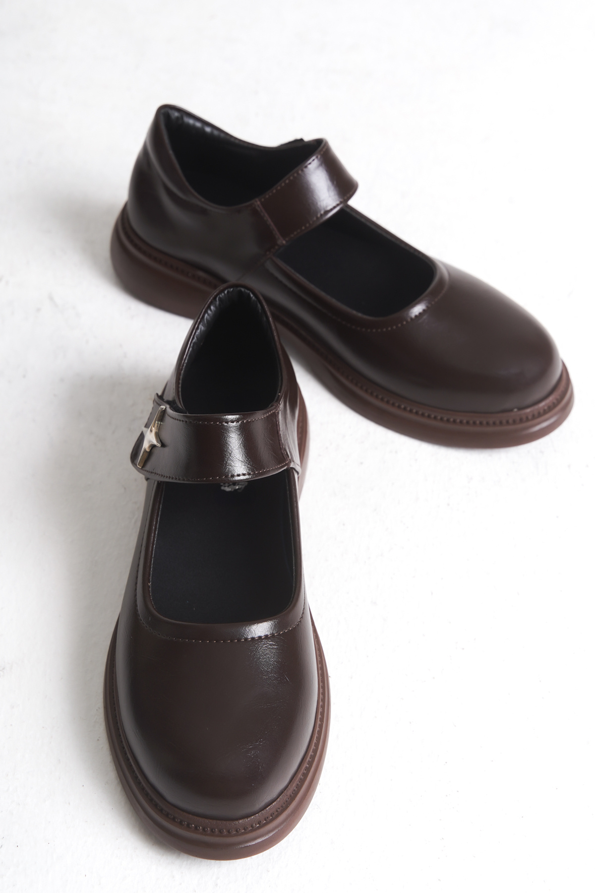 Kadın Kahve Mary Jane Cırtlı Bantlı Ayakkabı Kadın Kahve Mary Jane Cırtlı Bantlı Ayakkabı Elora 40