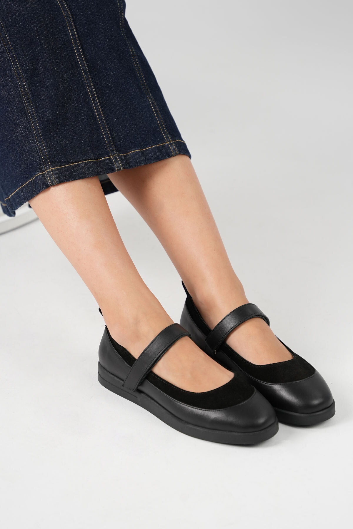 Kadın Siyah Rugan Mary Jane Cırtlı Bantlı Ayakkabı Kadın Siyah Rugan Mary Jane Cırtlı Bantlı Ayakkabı Elora 40