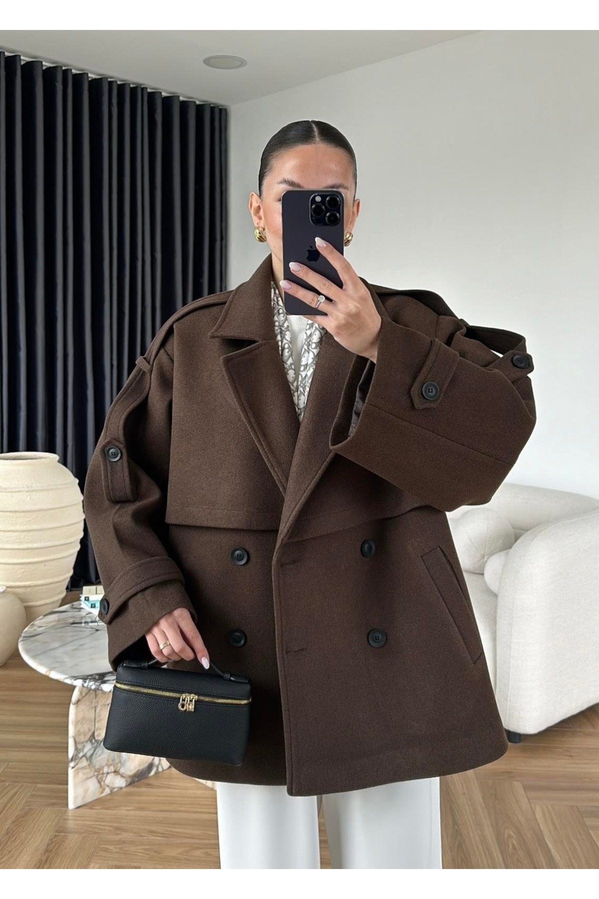 Kadın Premium Kalite Ara Boy Kaşe Kaban Kadın Premium Kalite Ara Boy Kaşe Kaban SLN525 L