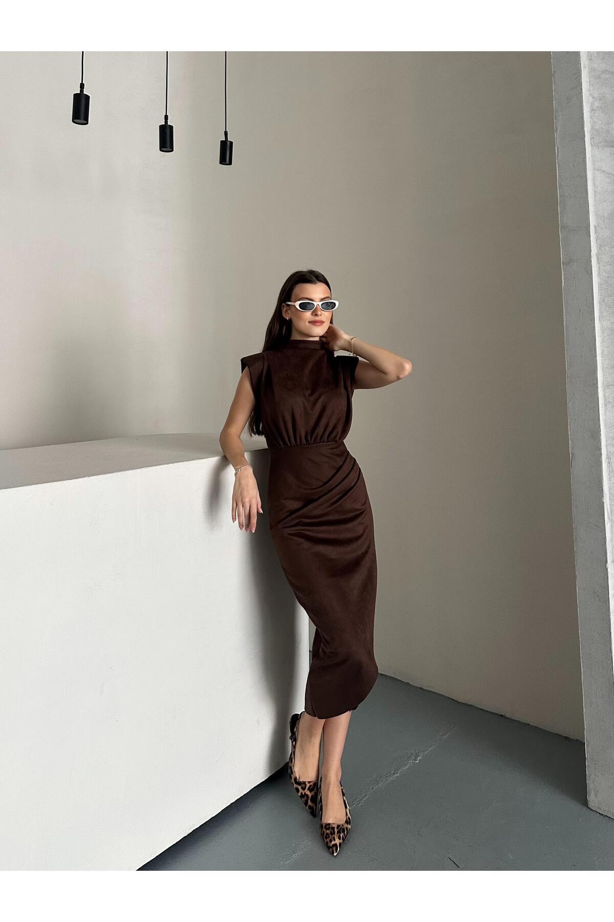 Süet Vatkalı Önü Yırtmaçlı Midi Elbise Süet Vatkalı Önü Yırtmaçlı Midi Elbise DKS2501 XL
