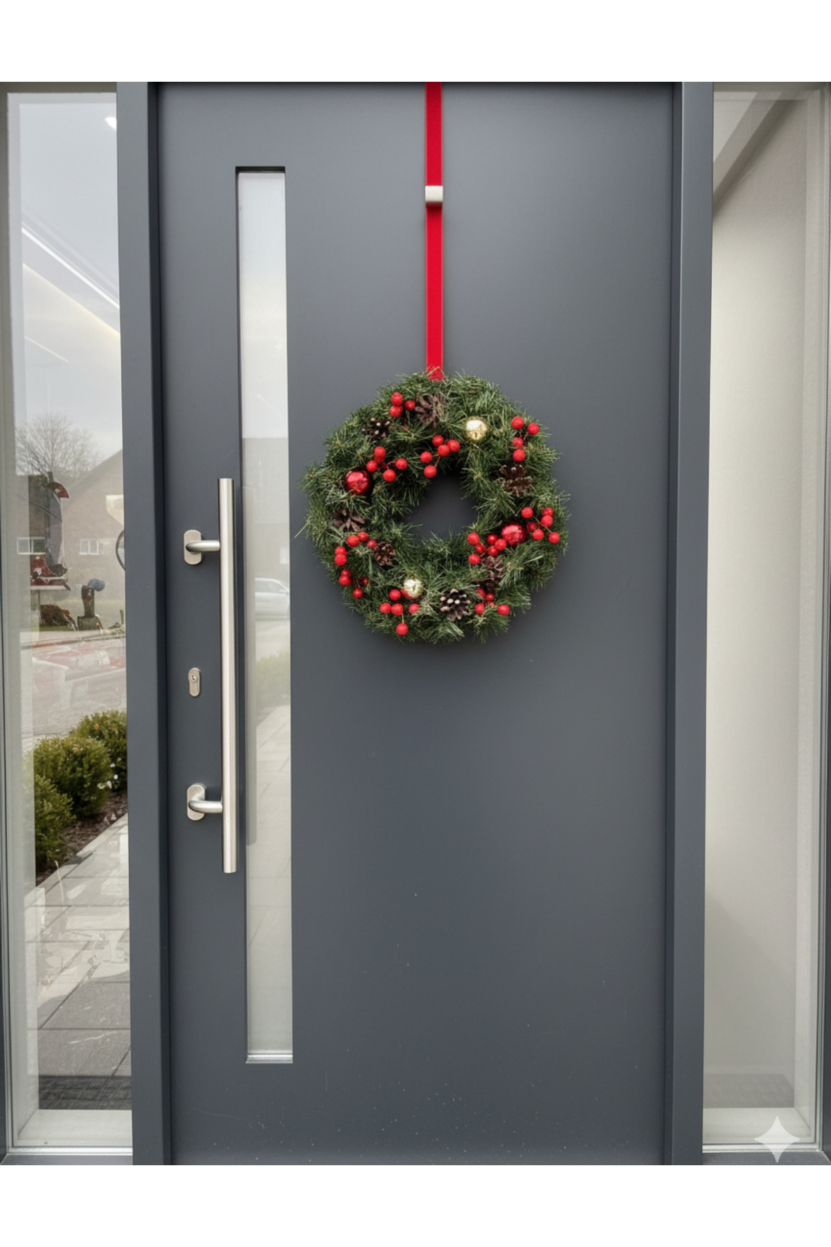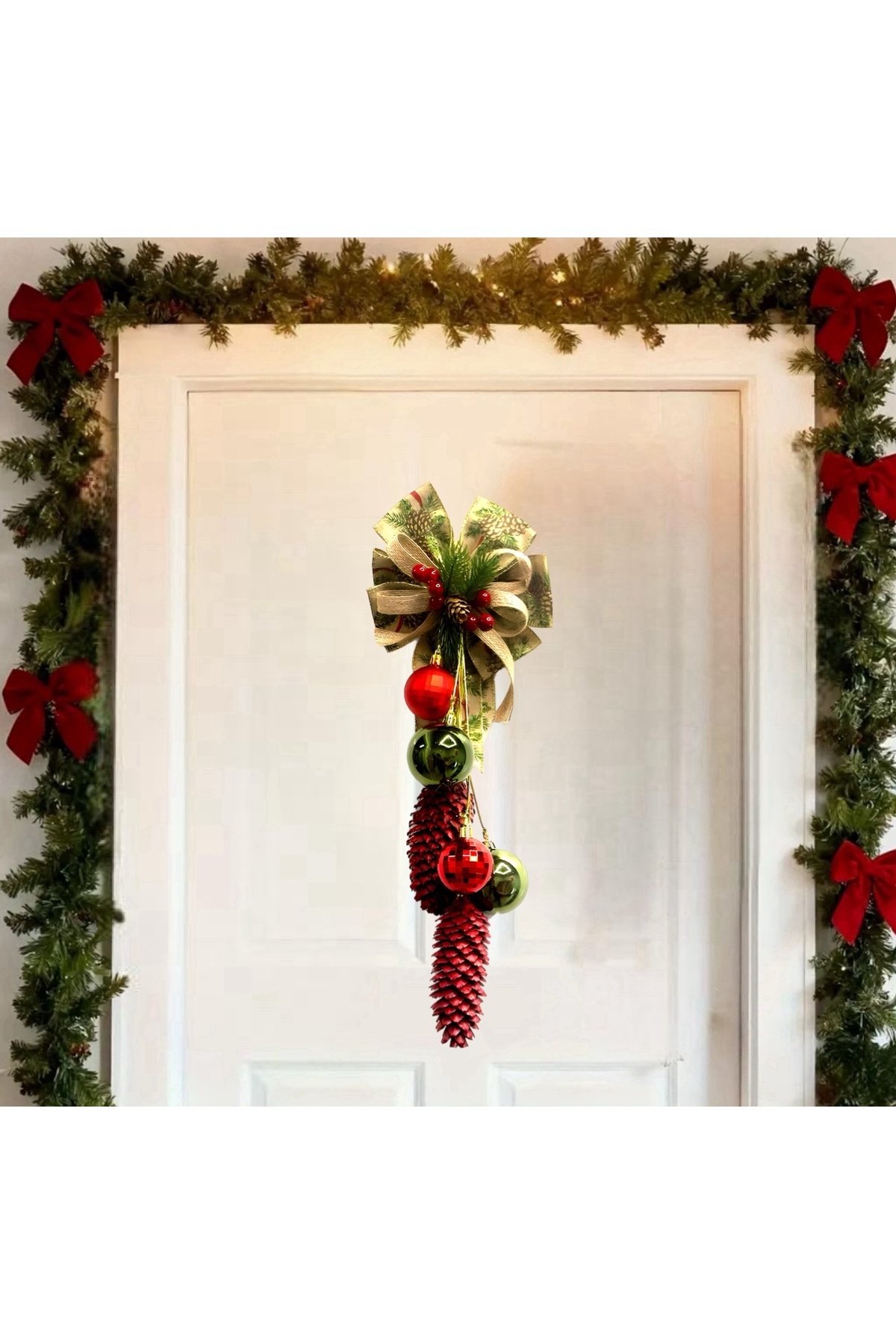 Yılbaşı Kapı Süsü Fiyonklu Kokina Çiçekli Yılbaşı Kapı Süsü Fiyonklu Kokina Çiçekli YLB-0039 تک سایز