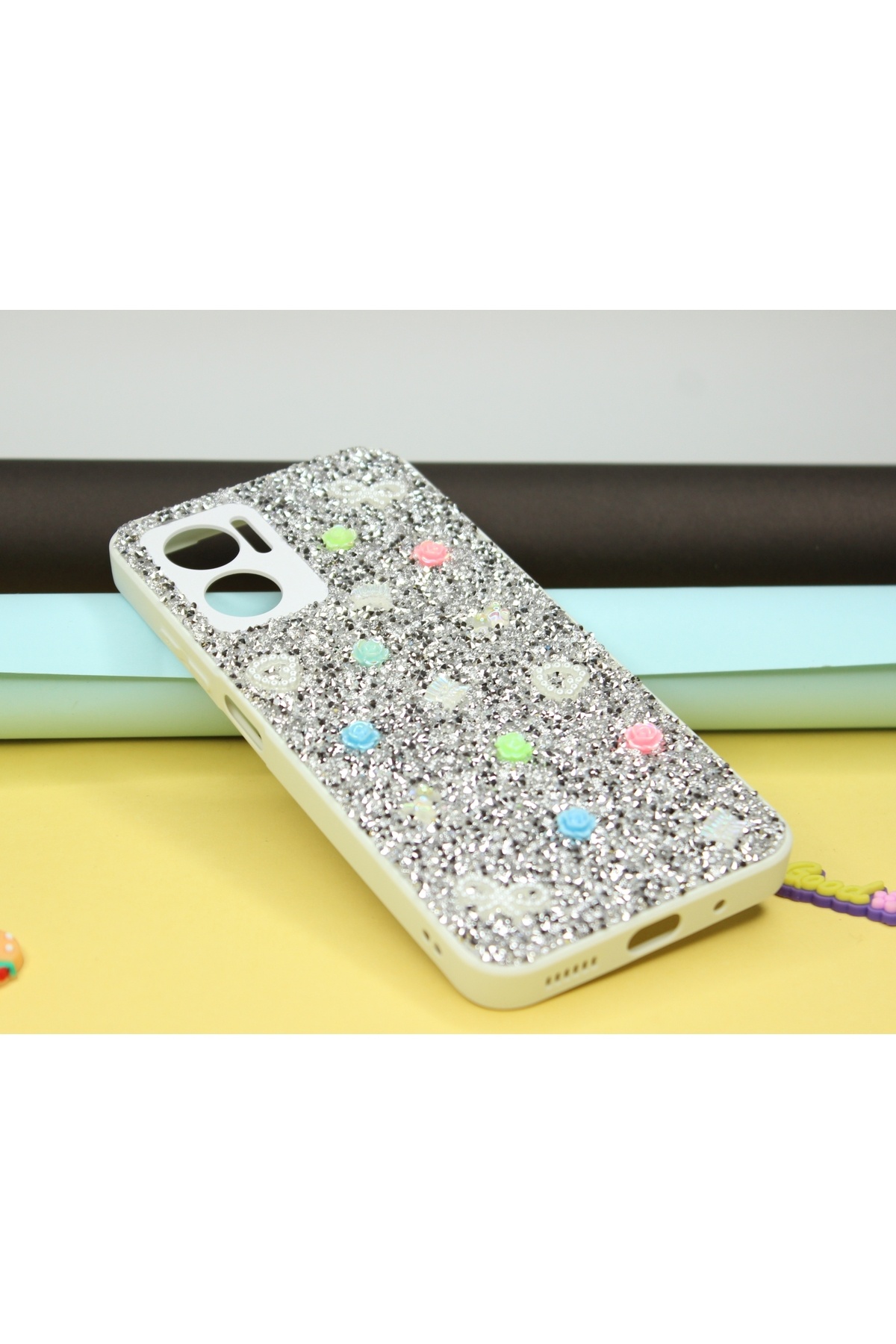 Xiaomi Redmi Note 11e Kılıf Taşlı Gül Desenli Xiaomi Redmi Note 11e Kılıf Taşlı Gül Desenli تک سایز