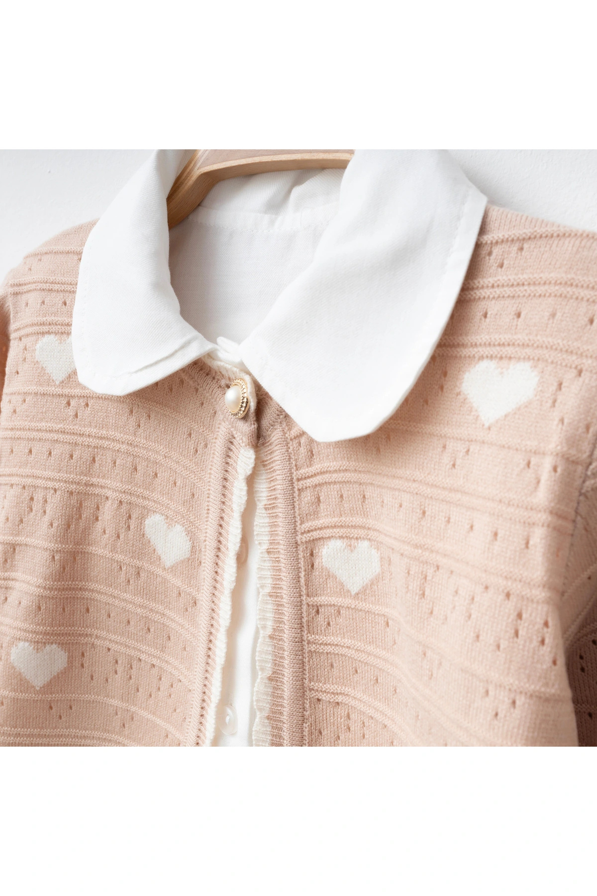 Gökçe Kalp Desenli - Triko Hırka - Gömlek Pileli Etek 3'lü Kız Çocuk Takımı Gökçe Kalp Desenli - Triko Hırka - Gömlek Pileli Etek 3'lü Kız Çocuk Takımı MYL081414 5 Yaş