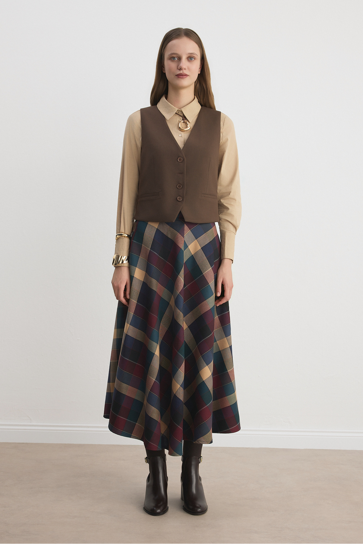 Siyah Ekoseli Midi Boy Etek Siyah Ekoseli Midi Boy Etek 43F189 M