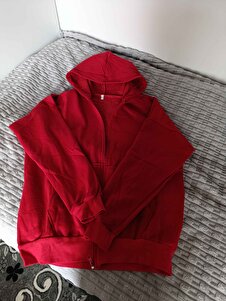 Unisex Kapüşonlu Kırmızı Oversize Hırka Zip 2 Iplik Orta Kalınlık Unisex Kapüşonlu Kırmızı Oversize Hırka Zip 2 Iplik Orta Kalınlık TYCB8462ADFE0FA105 XL