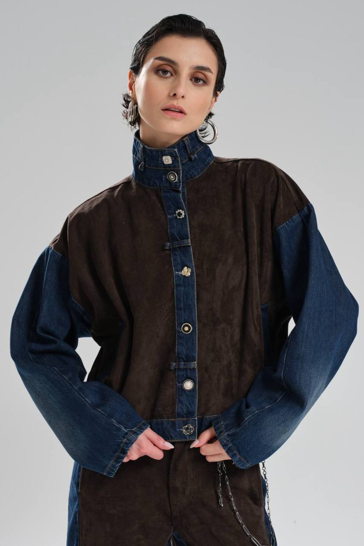Kadın Leopar Baskılı Ara Biyeli Detaylı Tasarım Denim Ceket Kadın Leopar Baskılı Ara Biyeli Detaylı Tasarım Denim Ceket TW3-36375 L