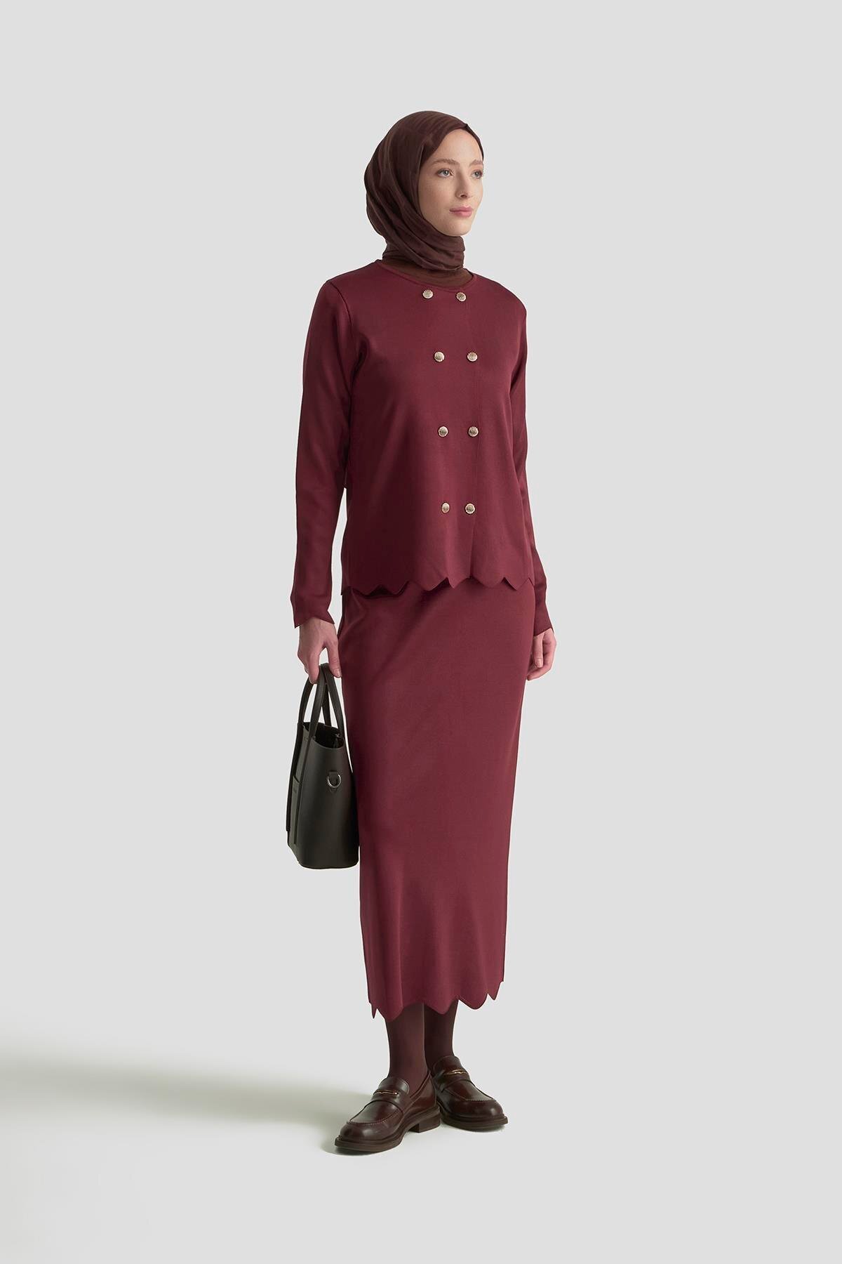 Çift Düğme Detaylı Cepli Etekli Triko İkili Takım Bordo 25YTD6118 Çift Düğme Detaylı Cepli Etekli Triko İkili Takım Bordo 25YTD6118 K25YA0612001-1474 3